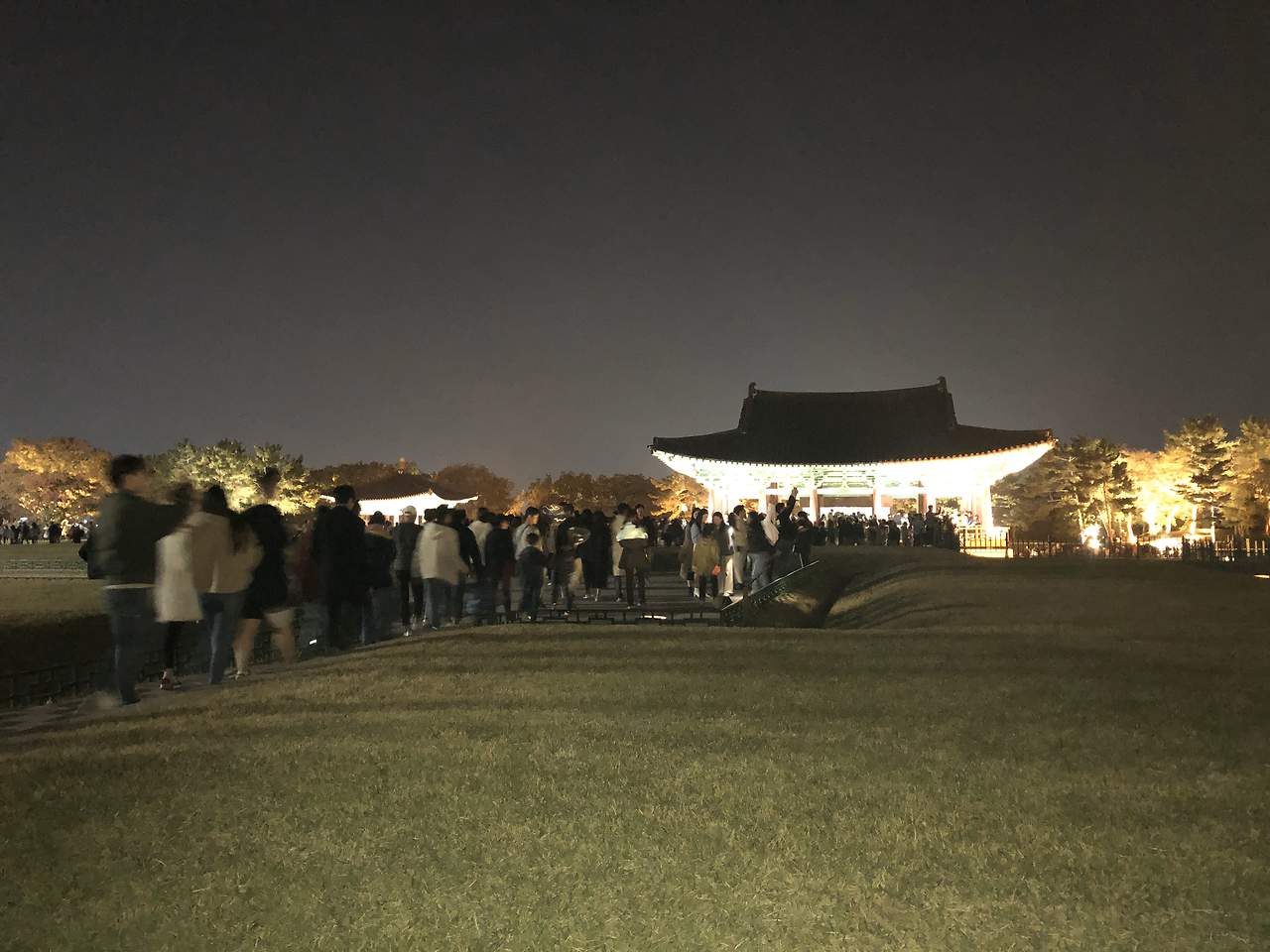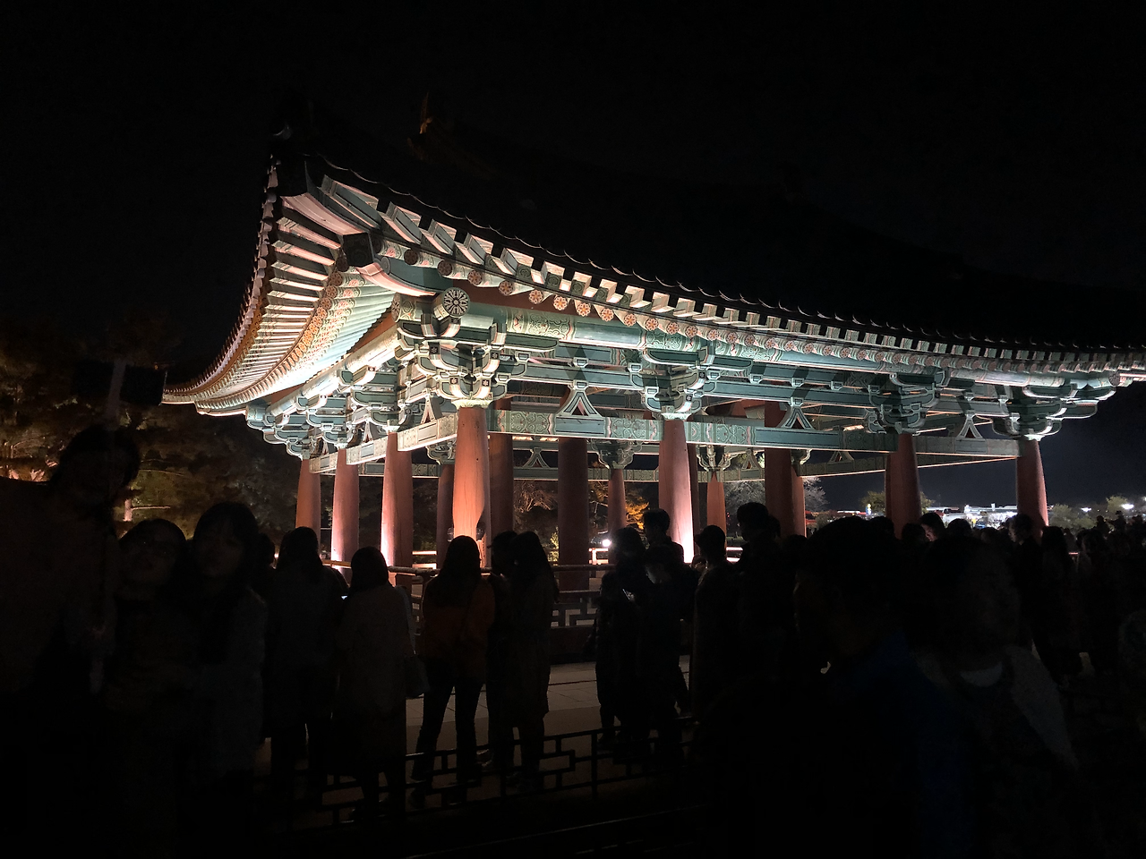 멀리 보이는 전각이 정말 눈이 부실 정도로 불을 환하게 밝히고 있었다. 마치 불나방들처럼 우르르 불 켜진 동궁으로 몰려간다. 아래에서 위로 센 빛으로 비추어진 전각은 기왓장 아래 갈비살을 낱낱이 드러내고 있었다. 하지만 동궁과 월지의 그 유명하다는 야경은 이것을 보는 것이 아니었다.