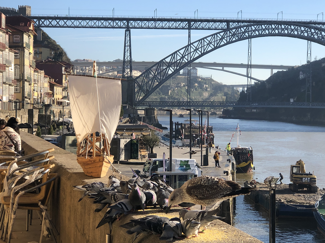 포르투에서는 발길 가는대로 거닐다보면 결국에는 도달하고야 마는 두 장소가 있다. 한 곳은 동 루이스 1세다리 위층이고, 또 한 곳은 포르투의 중심, 히베이라[ Ribeira Square ] 광장이다. 포르투 우리집이 있는 산타 카타리나 거리[ Santa Catarina Street ]에서 출발하여 어느덧 히베이라 광장에 도착했다. 동 루이스 1세 다리가 코 앞에서 조망되는 완벽한 위치이자 아침 햇살이 그냥 얼굴로 무지막지하게 쏟아지는 곳. 겨울이지만 이곳에선 선그라스가 필수다. 히베이라 광장은 아침부터 활기차다. 활기참 속에 오래 머무르고 싶었지만 본격적인 여행 첫 날 도루강을 따라 걸어가보기로 한다.