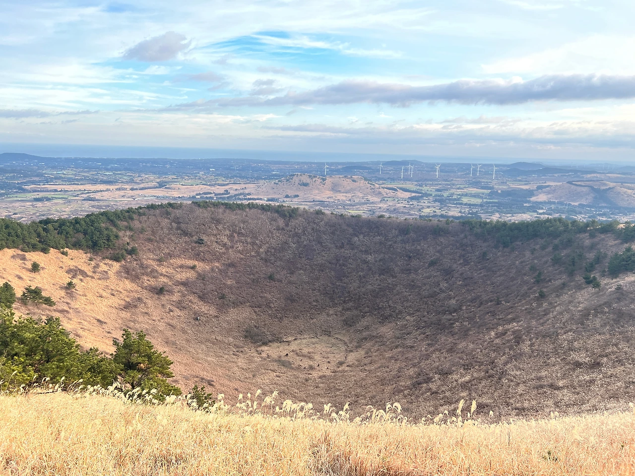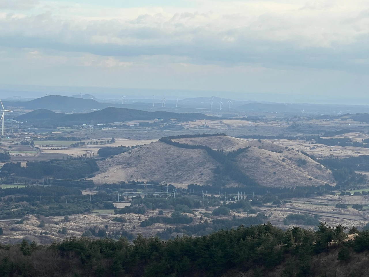 다랑쉬 오름 밑에서 위를 올라다보았을 땐 나름 뽀족해보였는데 이렇게 큰 분화구가 내려앉아 있었다. 신기하다.