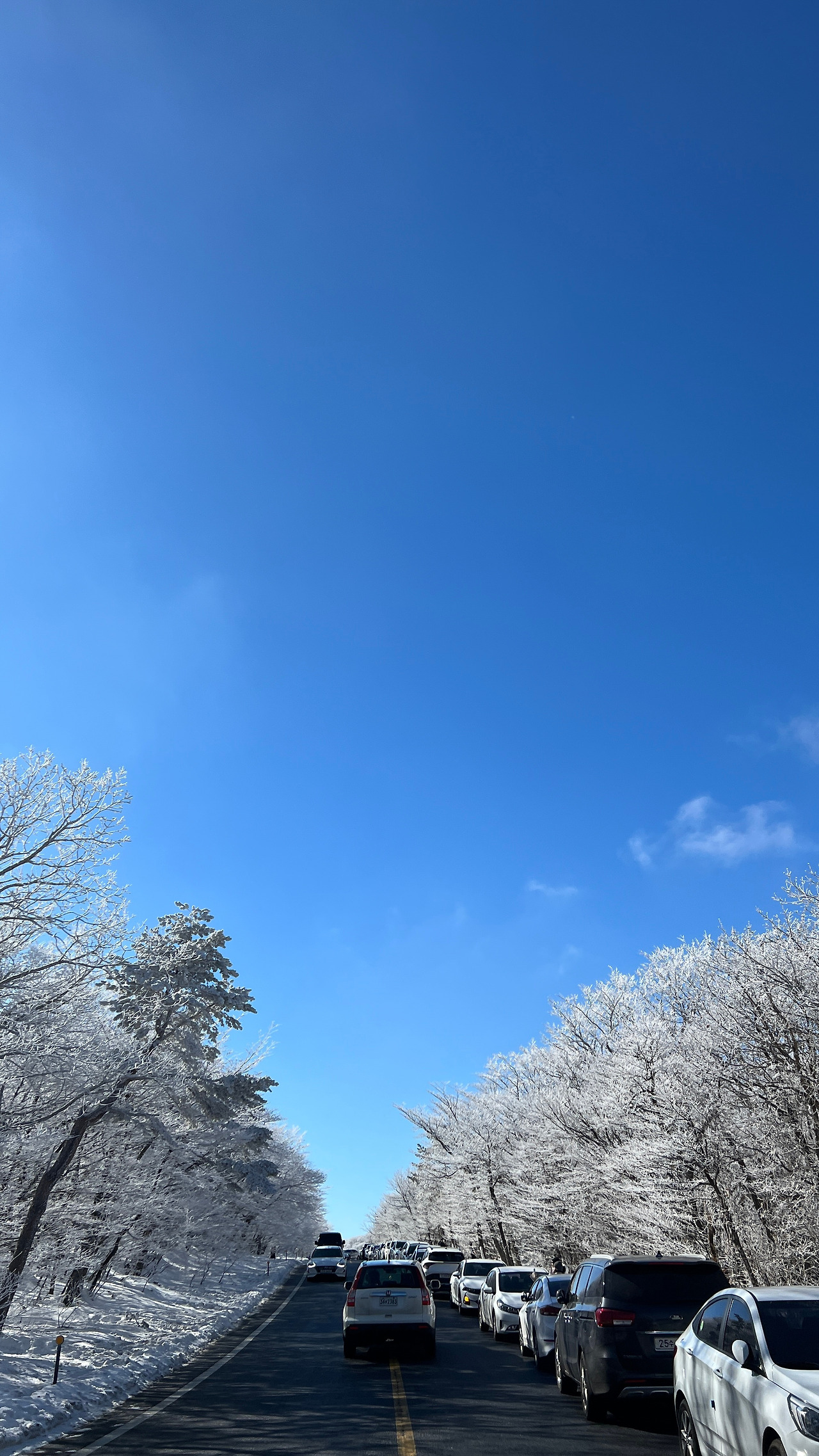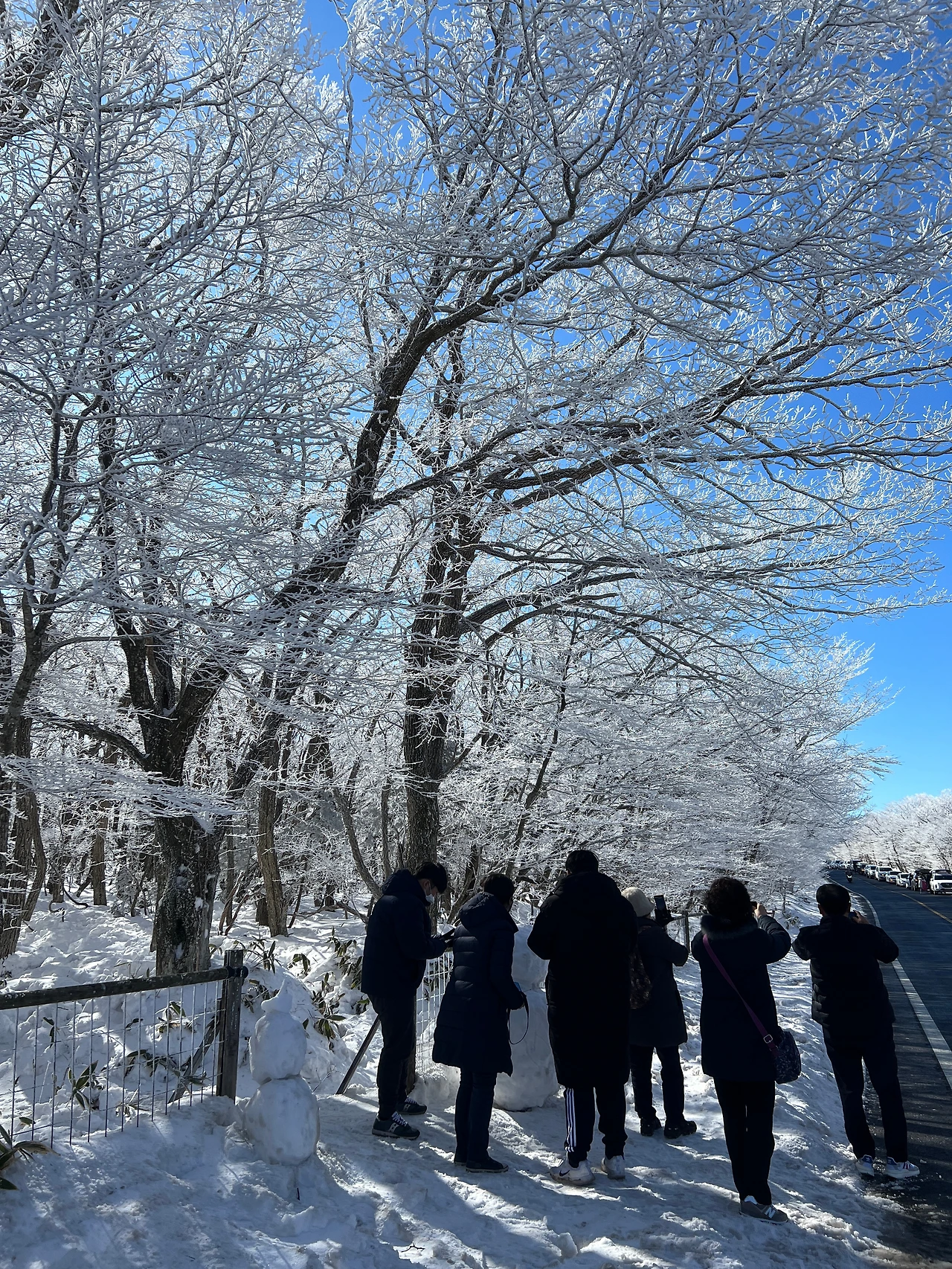 아직 1100고지 휴게소에 다다르지도 않았는데 눈꽃이 화려하게 도로와 하늘을 점령하고 있어서 참지 못하고 차에서 내렸다.