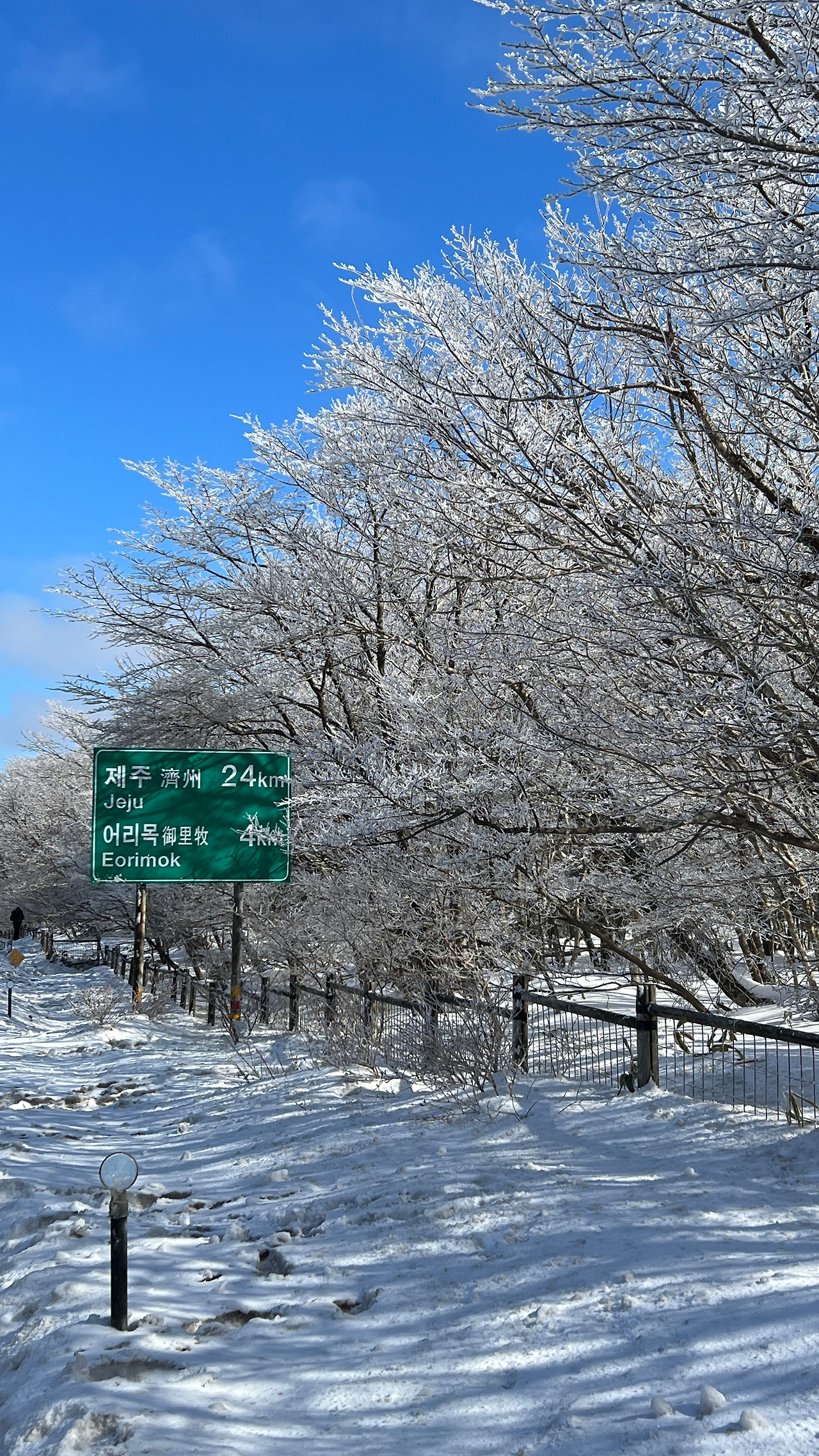 겨울 제주는 새빨간 동백꽃, 샛노란 유채꽃이 만발하는데 이렇게 새하얀 눈꽃도 아름다우니 모든 것을 다 갖추었다.