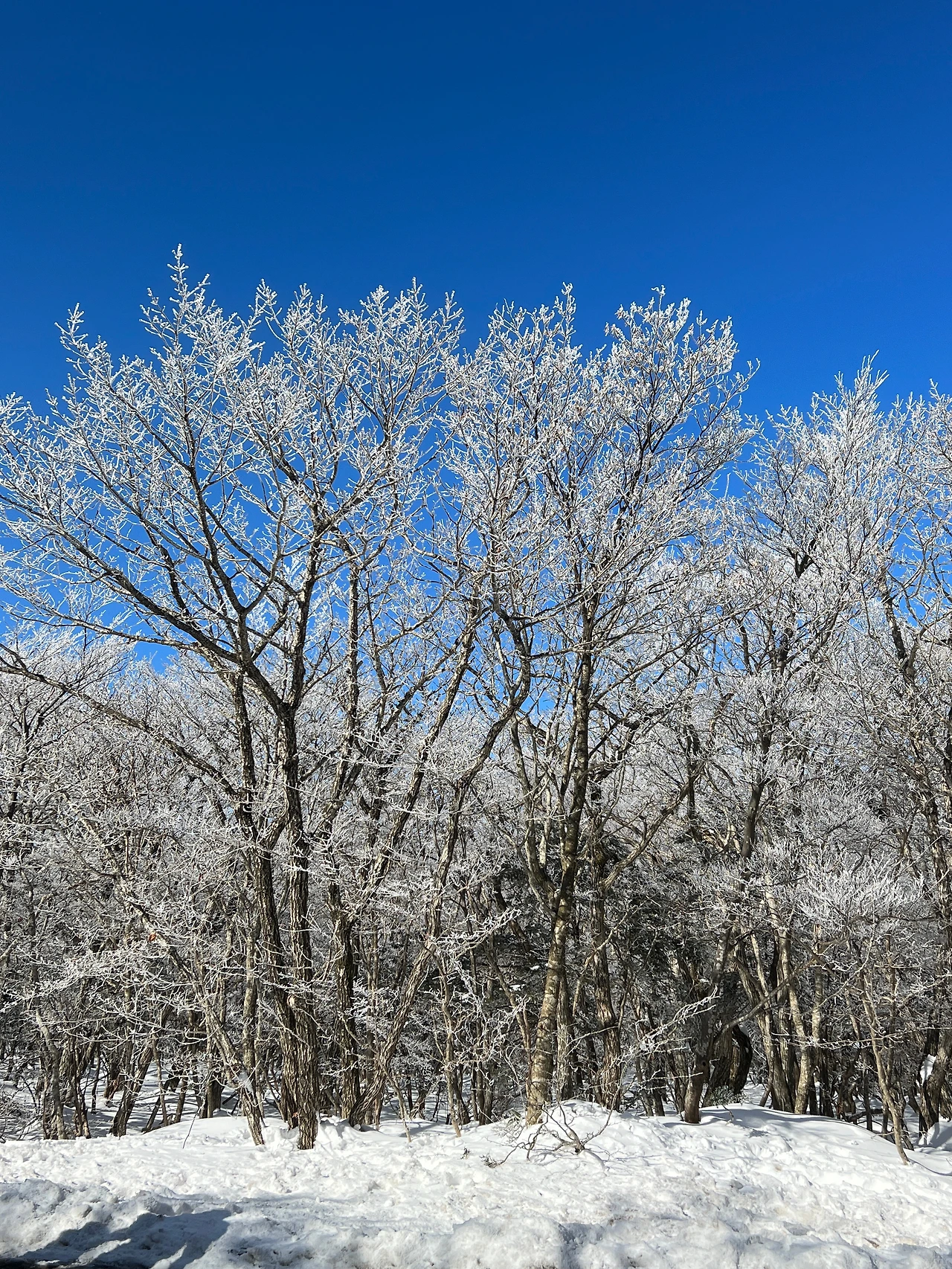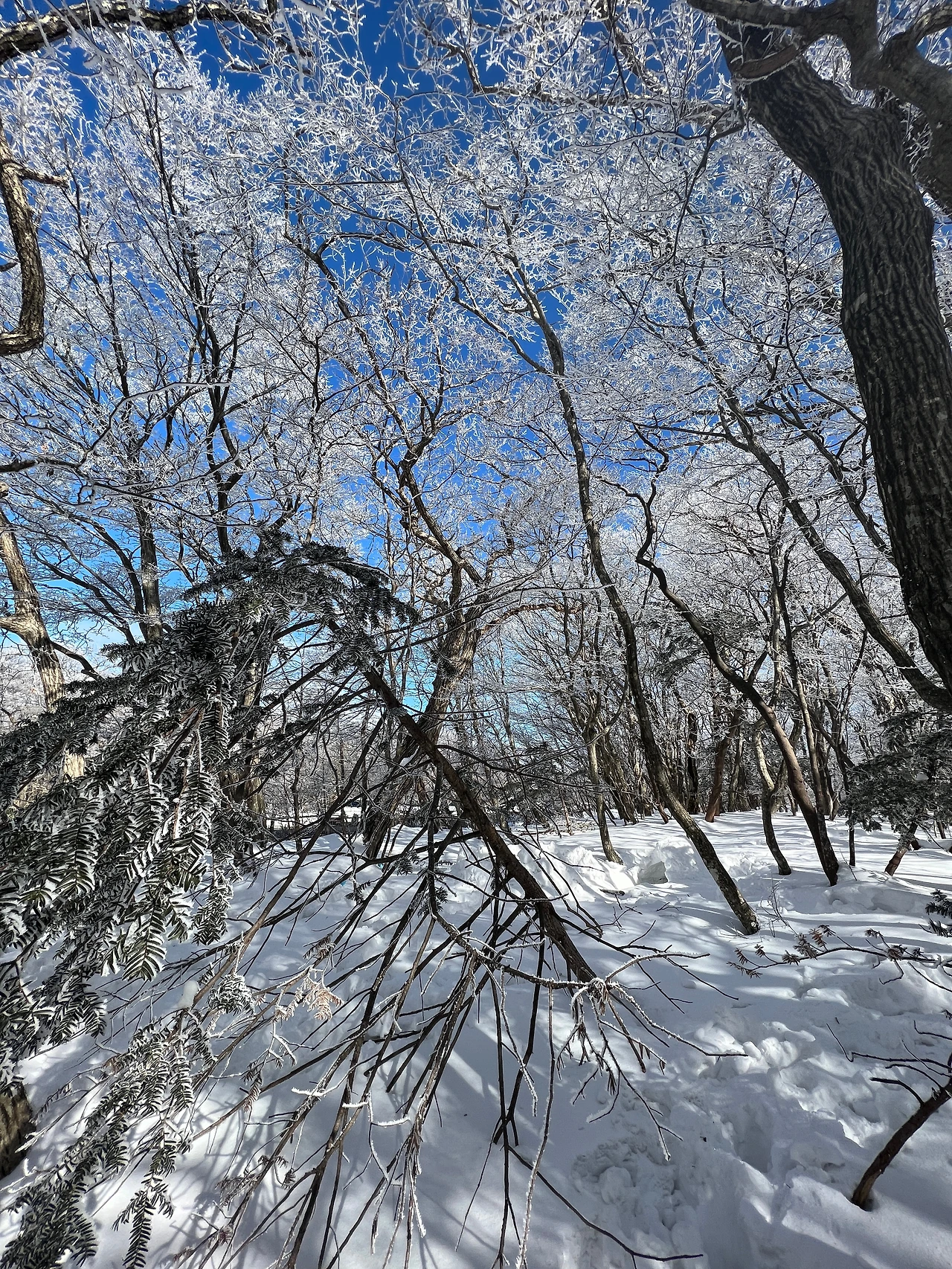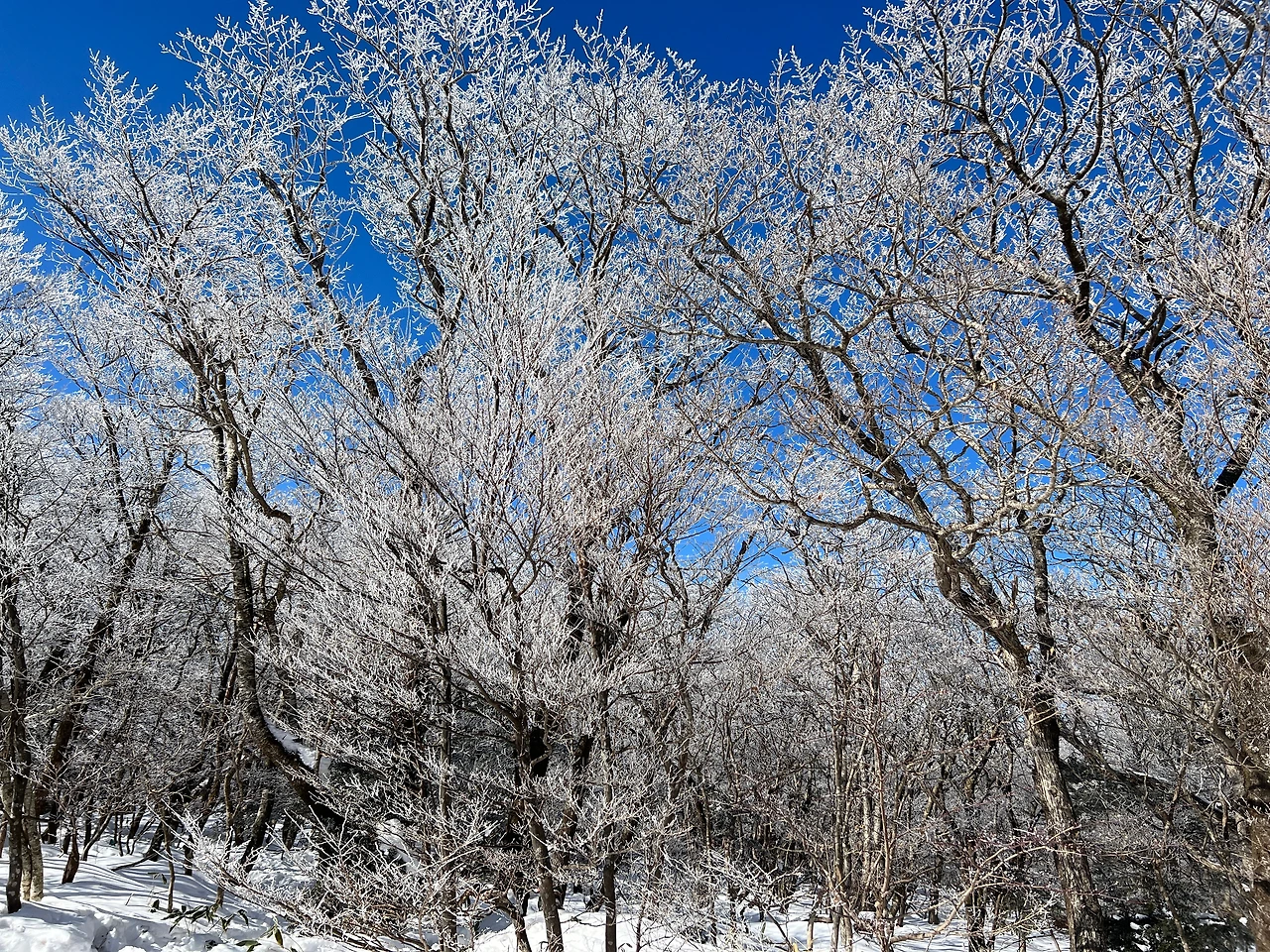 1100 고지를 즐기고 내려가는데 마치 상고대 터널이 벚꽃 터널 같은 느낌이 났다. 모르는 사람이 사진을 얼핏 보면 벚꽃으로 보일 수도 있겠다.