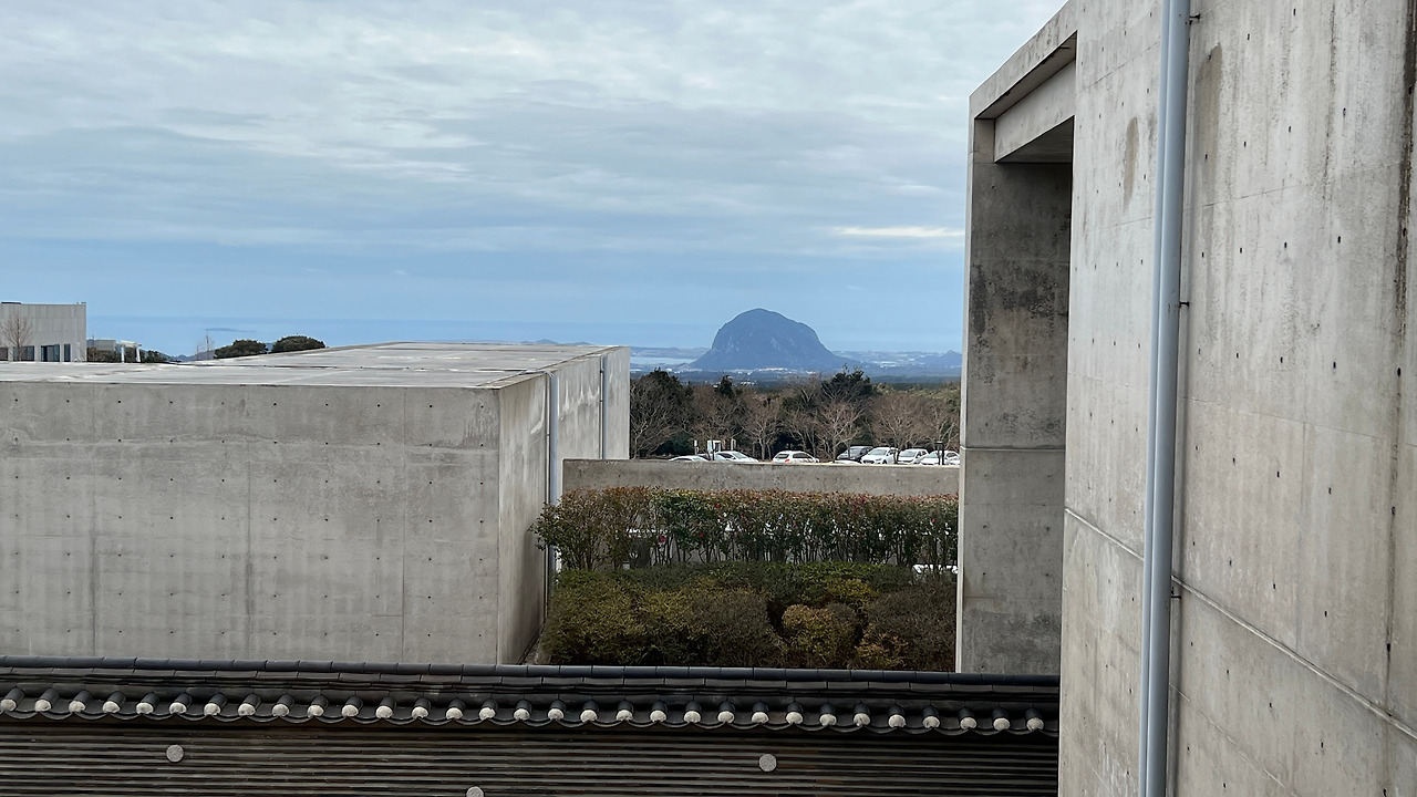 관람을 마치고 밖으로 나오면 산방산과 그 너머 바다가 관람객을 맞이한다.