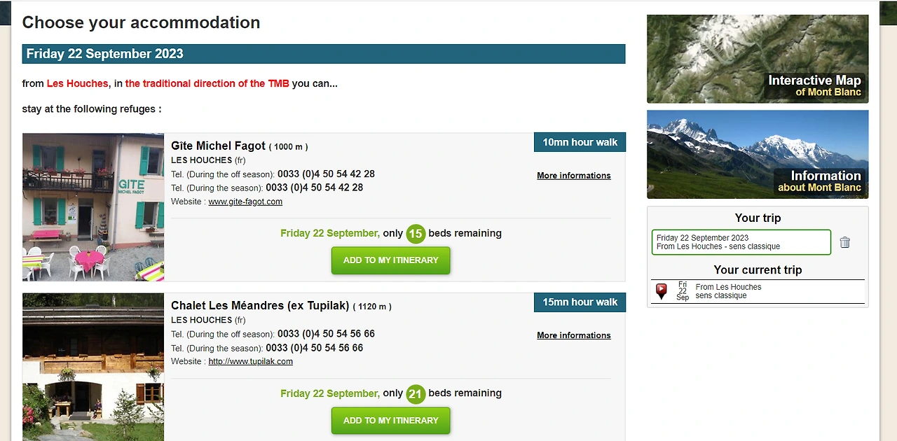 일단 전체 며칠을 걸을지를 결정해야 하고, 그 기간 동안에 하루에 얼마를 걷고 어디서 자야할지를 먼저 결졍해야하기 때문이다. 또한 평지가 아니기 때문에 하루에 얼마를 걸을지,걷게 될 예정인 곳의 오르막과 내리막의 길이가 어느 정도 되는지도 찾아보아야 한다. 즉 뚜르 드 몽블랑의 트레일에 대해 잘 알아야만 내 상황과 체력에 맞게 산장을 예약할 수 있는 것이다.