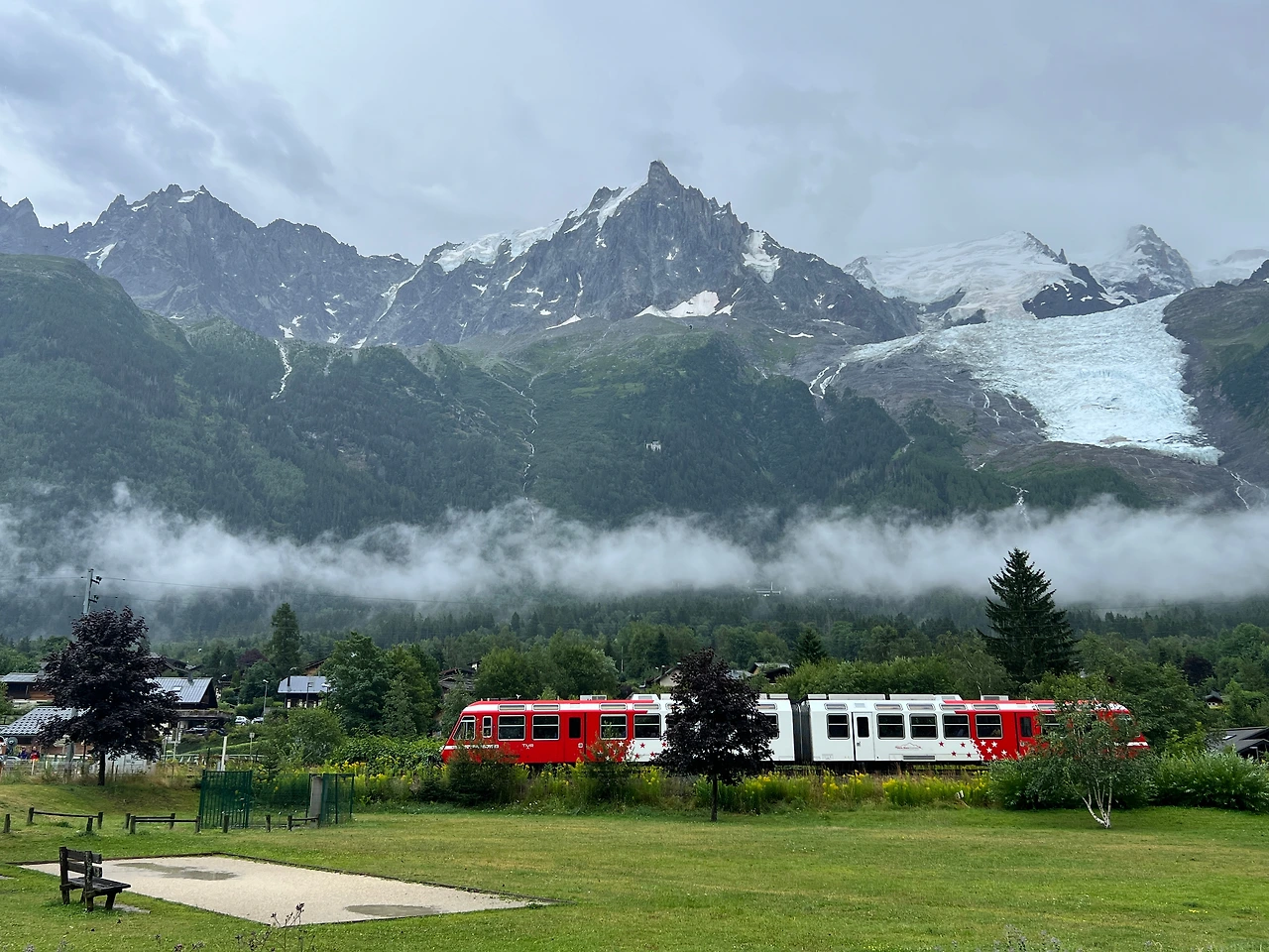 나의 계획은 이러했다. 뚜르 드 몽블랑의 출발점인 레우슈까지 버스로 가서 날씨가 혹시 기적적으로 개면 트레킹을 시작하고(그런 일은 일어나지 않았다..) 그러다가 비가 내리면 인근 숙소에서 하루 묵어가기로 한것이다. 오늘 꼭 미아주 산장을 가야겠다는 생각을 버리는 것이 내 계획의 핵심이라면 핵심이다.