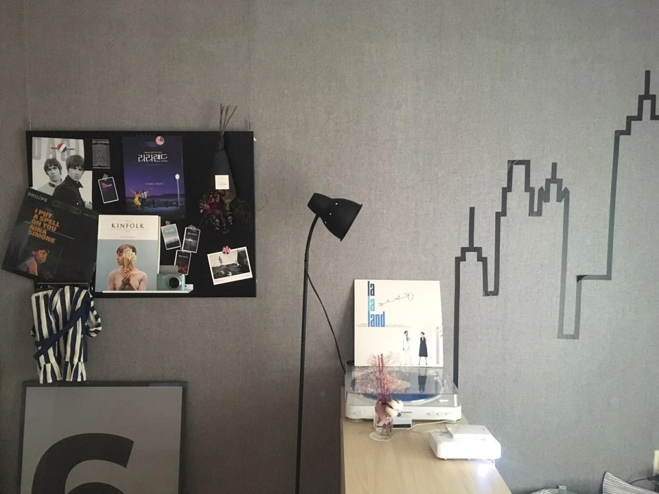집주인이 새로 도배해주는게 맞지만, 개인적인 사정으로 도배 대신 인터넷을 깔아주시기로 했다. 딱히 신경 쓰이는 상태가 아니라 나도 그냥 넘어갔다. 하루는 지나가는 말로 아버지가 시간 날 때 도배해주겠다고 해서, 미리 벽지나 구경해야지 하고 구경하던 중 충동을 못 이기고 주문을 해버리고 말았다. '혼자서라도 하고 말지, 뭐!'하는 마음으로. 택배 도착 문자에 괜히 일 저질렀단 생각이 들었지만 풀 바른 벽지로 하니까 도배가 쉽다는 블로거들의 후기에 용기를 얻어 혼자서 도배를 시작했다. 하다 보니 풀 바른 벽지가 조금 더 쉬울 뿐. 괜히 전문가들에게 돈 내고 하는 게 아니구나 싶었다. 원룸인데도 도배하느라 온 몸에 풀칠하면서 반나절을 꼬박 썼으니 말이다. 게다가 팔도 짧고 키도 작은 내가 스텝 스툴 하나에 의존해서 벽지를 바르는 건 도통 어려운 일이 아니었다. 흑흑. 그래도 한쪽 면은 짙은 그레이로, 나머지는 화이트로 깔끔하게 도배된 벽을 보니까 기분은 좋았다.