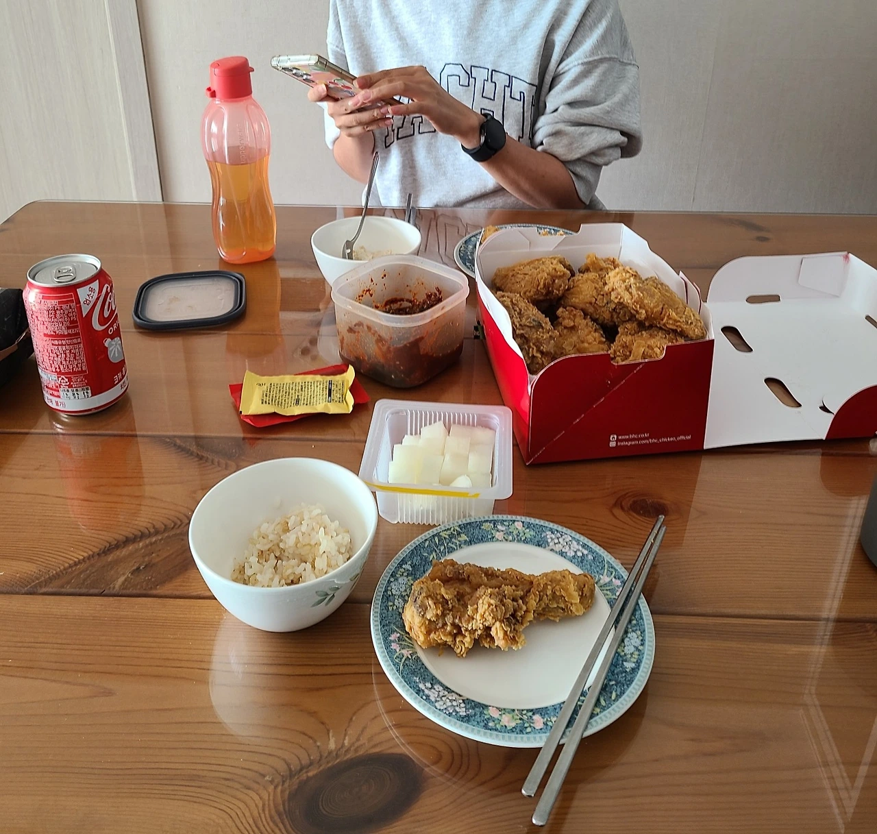 고소한 냄새가 코를 찌른다. 한 마리를 온전히 다 가진 것 같은 착각에 빠져든다. 여유롭고 우아하게 1인 1다리를 쥐었다. 낭랑한 오돌뼈 씹는 소리가 울려 퍼지고 초췌한 어미새들의 치킨 파티가 시작되었다. 숙명인 것이다.