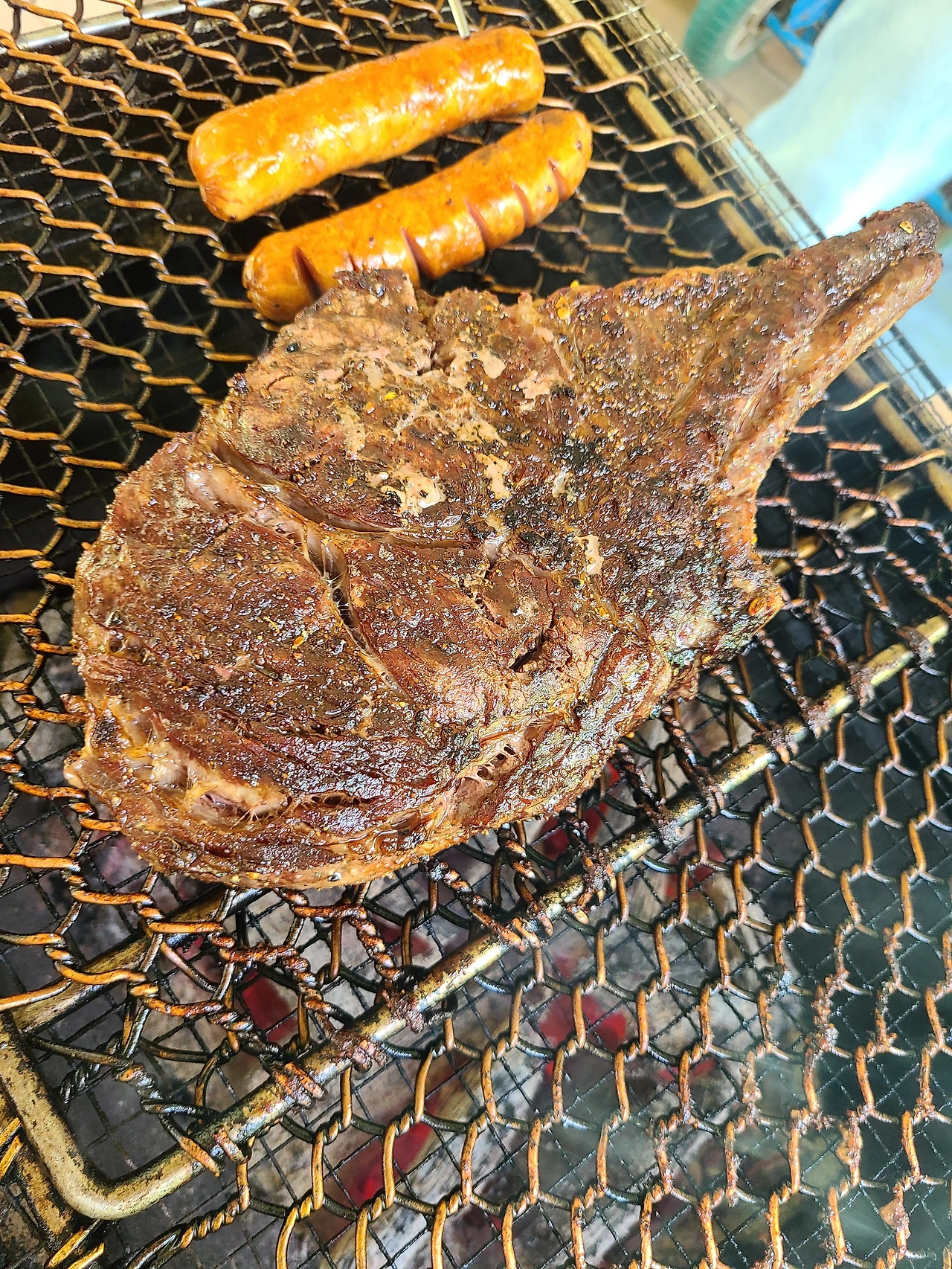 점심으로 토마호크 스테이크를 먹었다. 두께가 한 뼘 정도 되는 것 같았다. 어마 어마한 두께와 어마 어마한 맛. 우리가 아는 아웃백 스테이크 바로 그 맛이다. 이건 엄마인 내가 숲을 즐기는 방법이다.