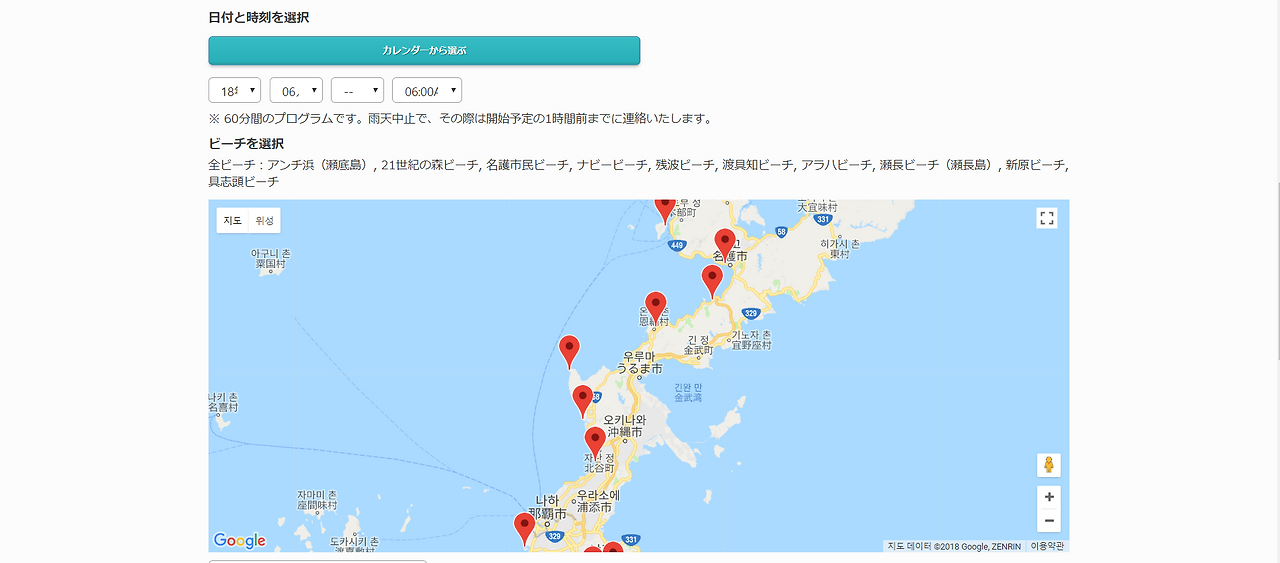 ① 구글에서 '沖縄 ビーチヨガ' 검색합니다. 첫 번째 나오는 사이트 클릭!