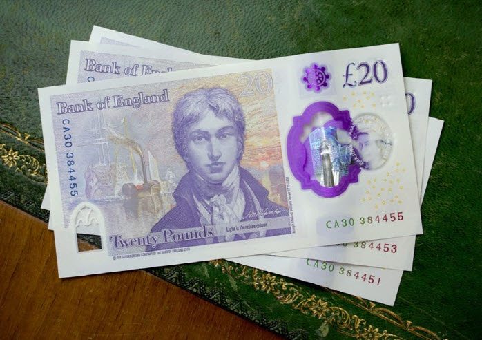 윌리엄 터너의 초상화(좌)와 그의 모습이 새겨진 영국의 20파운드 지폐(우. @changechecker.org). 터너는 현재도 영국인에게 널리 사랑받는 화가다.