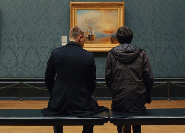 내셔널 갤러리에서 <테메레르호의 마지막 항해>를 보며 대화를 나누는 제임스 본드와 Q @네이버 영화