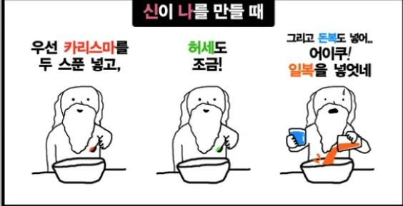 인터넷에서 재미있는 짤을 본 적 있다. 신이 나를 만들 때 어떤 특성을 넣었을지 그 조합을 살펴보는 그림. 자기 관찰을 은근히 도와주는 그림 아닐까 싶다.