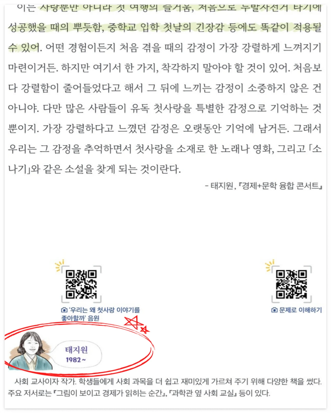 근황 1. 제 글 하나가 중학교 국어 교과서에 실렸어요. (사실 인스타그램에 이미 올린 소식 재탕이긴 하지만. 허허), 비상교육에서 이번에 나오는 중학교 2학년 국어 교과서 첫 단원에 제 글 ‘우리는 왜 첫사랑 이야기를 좋아할까?’라는 글이 담겼습니다. 제목을 들으면 상당히 감성이 넘치는 글일 것 같지만, 첫사랑의 추억이 강렬하게 각인되는 이유를 경제학의 법칙과 엮은 글이에요. 네, 맞습니다. 감성파괴 글이죠.