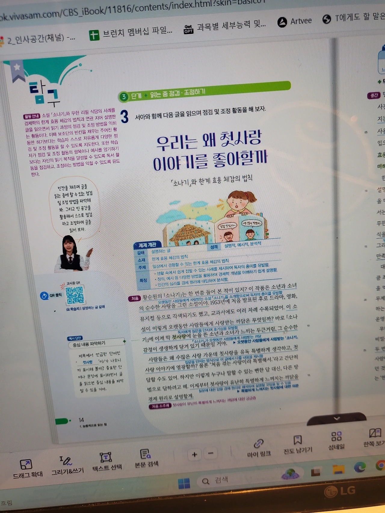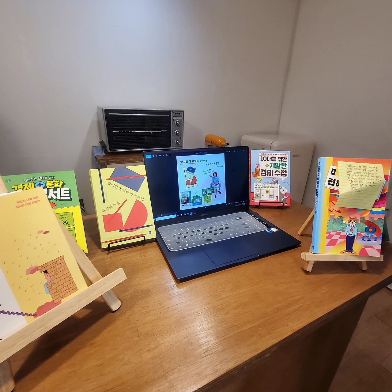 제 본업이 교사이다 보니 교과서에 실렸다는 게 유독 기분 좋게 느껴지네요. 출판사에 가보면 2022년 개정 교육과정 교과서를 미리 볼 수 있는 교과서 전시관이 있든요. 그걸 보면서 기쁜 마음에 혼자 히죽이기도 했습니다. (쓰고 나서 상상해 보니 제 모습이 좀 음흉하게 느껴지네요)