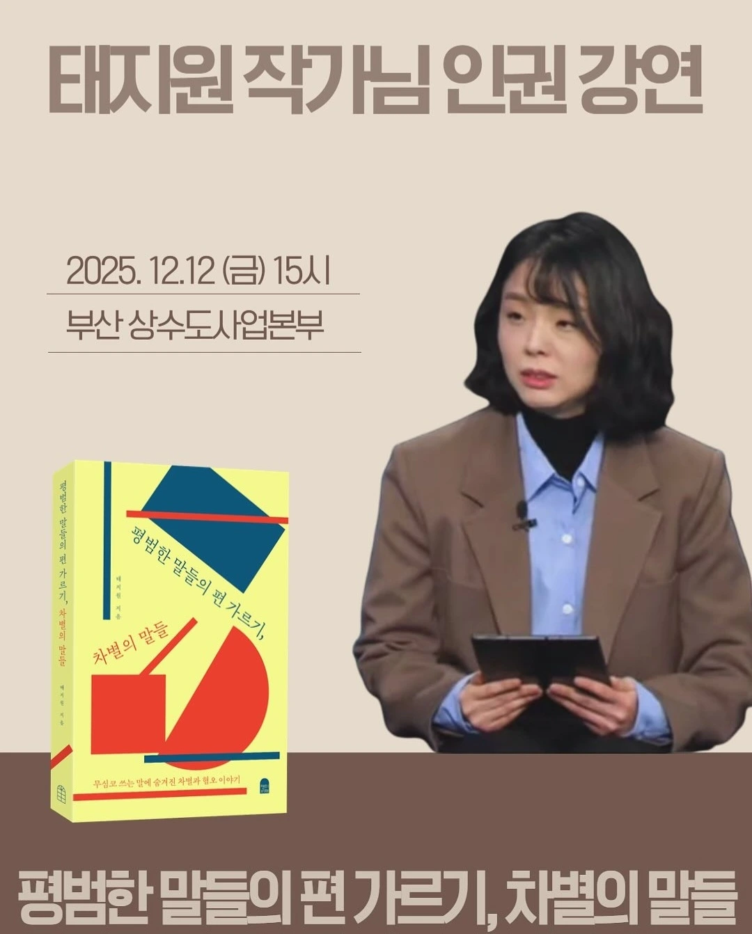 1. 12월 12일(금요일)에 부산에서 인권 특강을 합니다. 부산광역시 인권센터에서 감사하게도 초청해 주셔서 강연을 하게 되었습니다. 강연 보러 오시는 모든 분께 제 책도 한 권씩 모두 주신다고 하시네요. 질문의 시간도 있고, 제가 사인해드리는 시간도 있습니다.