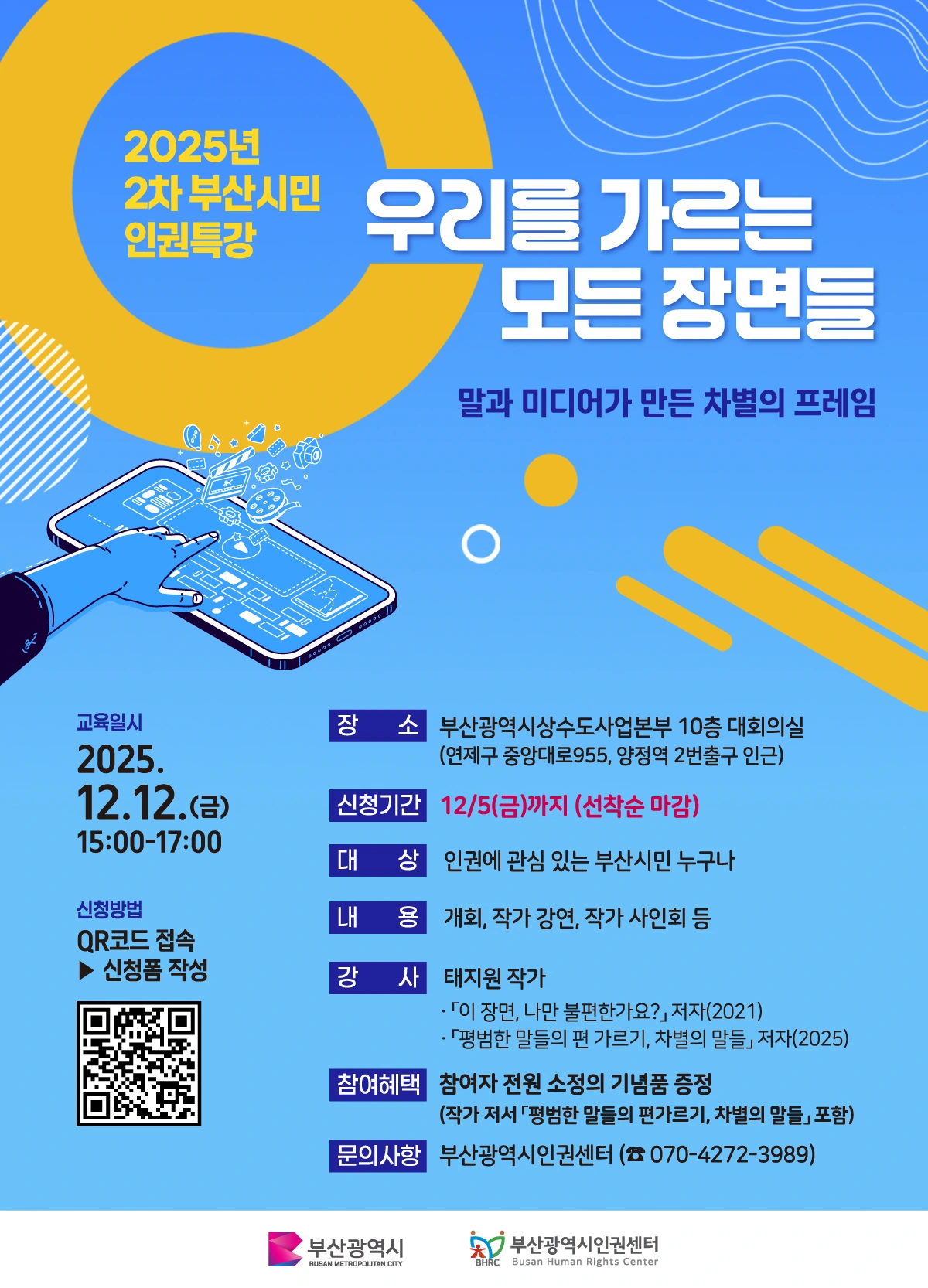 ✅대상 : 인권과 일상의 변화를 함께 고민하고 싶은 부산시민 누구나(선착순 100분 모집이라고 하시네요)