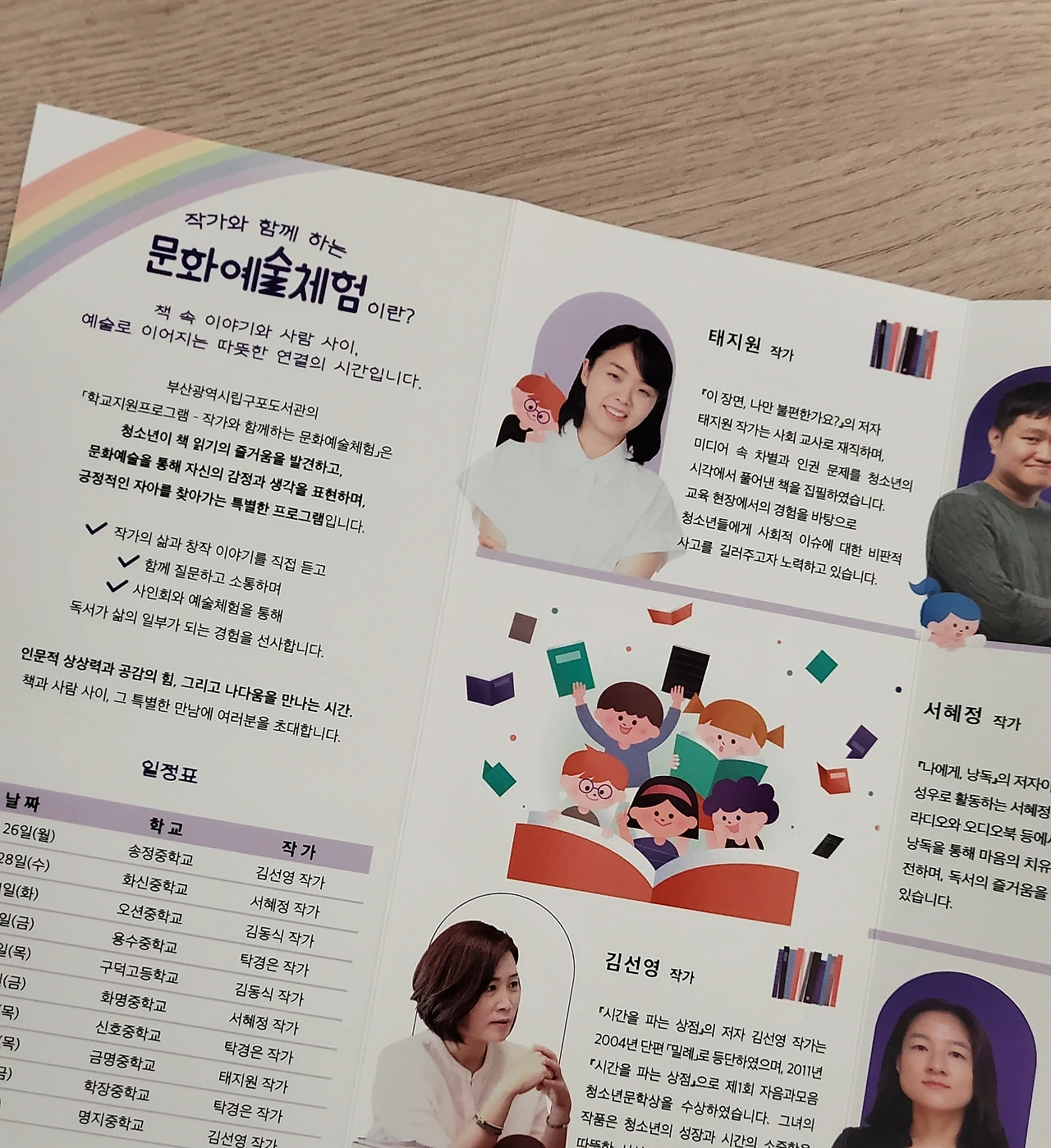 덧2. 사실 지난 달에도 부산에 강연을 갔었어요. 부산구포구립도서관이 주관해서 '작가와 함께 하는 문화예술체험'의 일환으로 부산의 금명중학교에 갔었는데요, 이 중학교에 특이하게도 소설부 친구들이 있었어요.