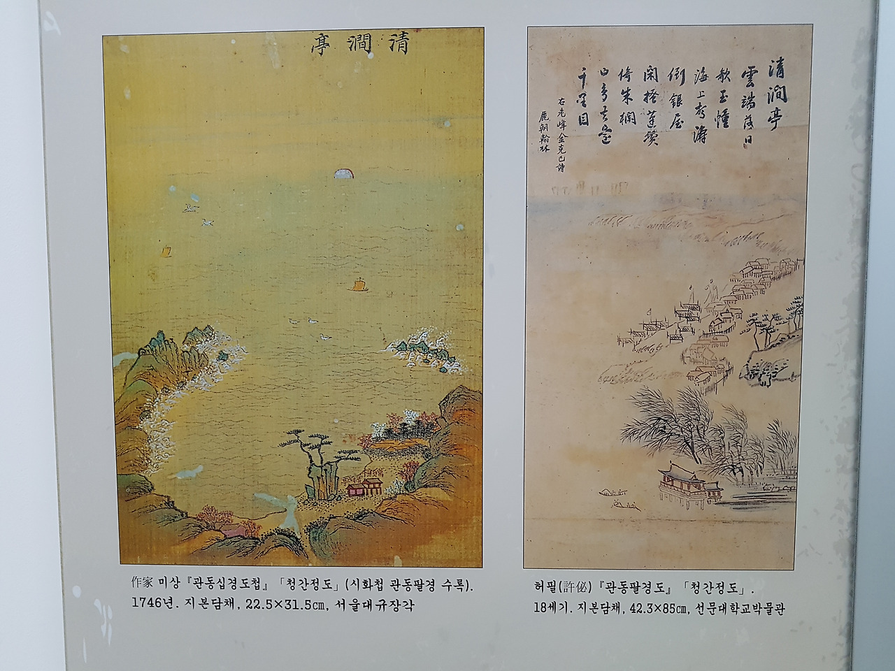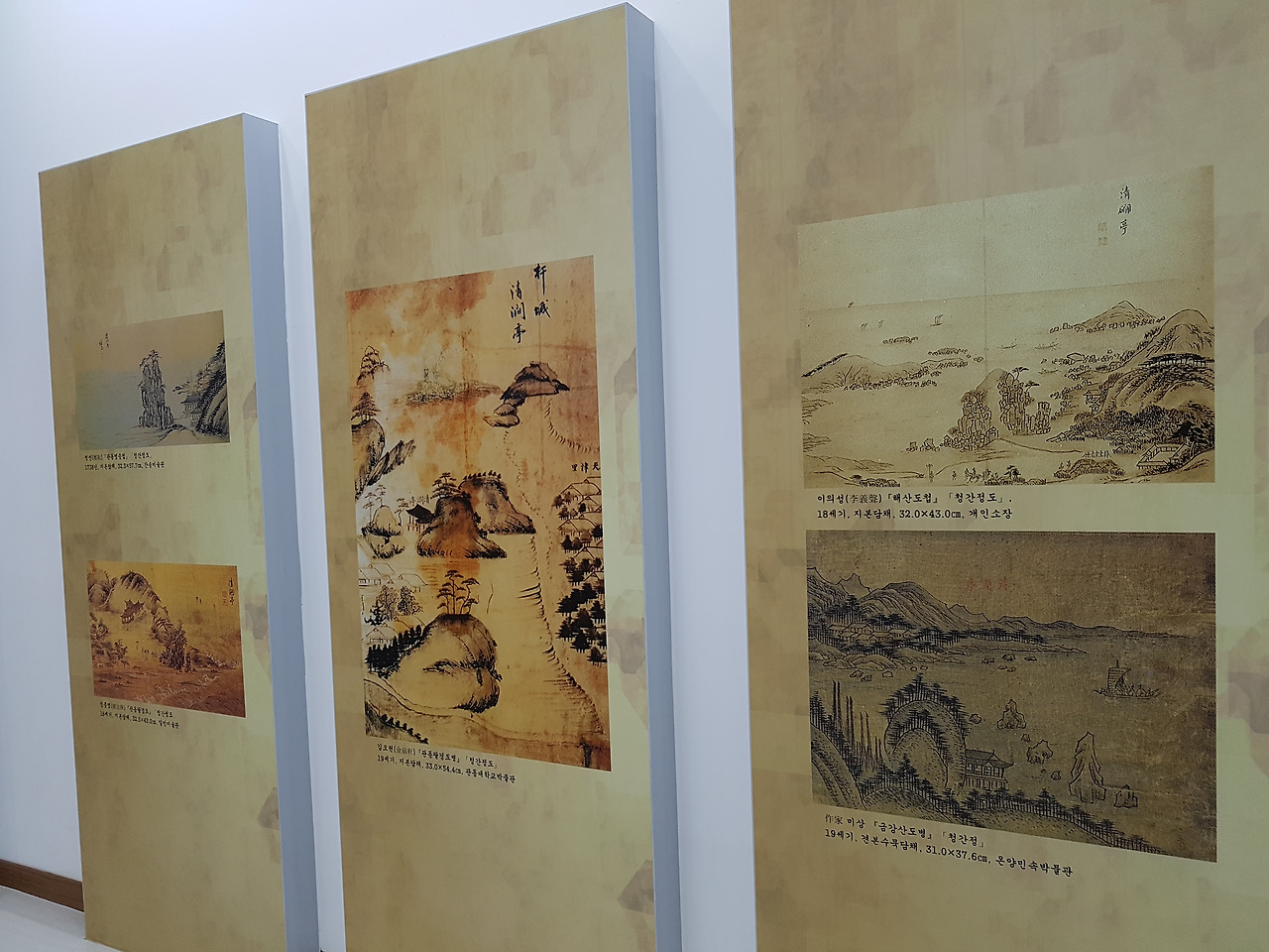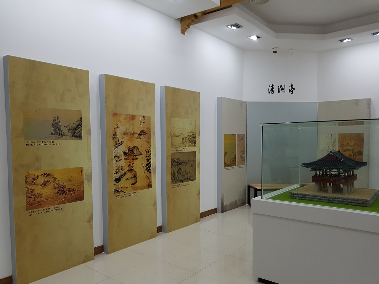안으로 들어가면 청간정이 기록된 역사서와 그림을 볼 수 있는데 그림 표현이 그 시대마다 다른 것이 너무 귀엽기도 하고 위치적으로 옮겨진 흔적들이 담겨 의미 있었다.