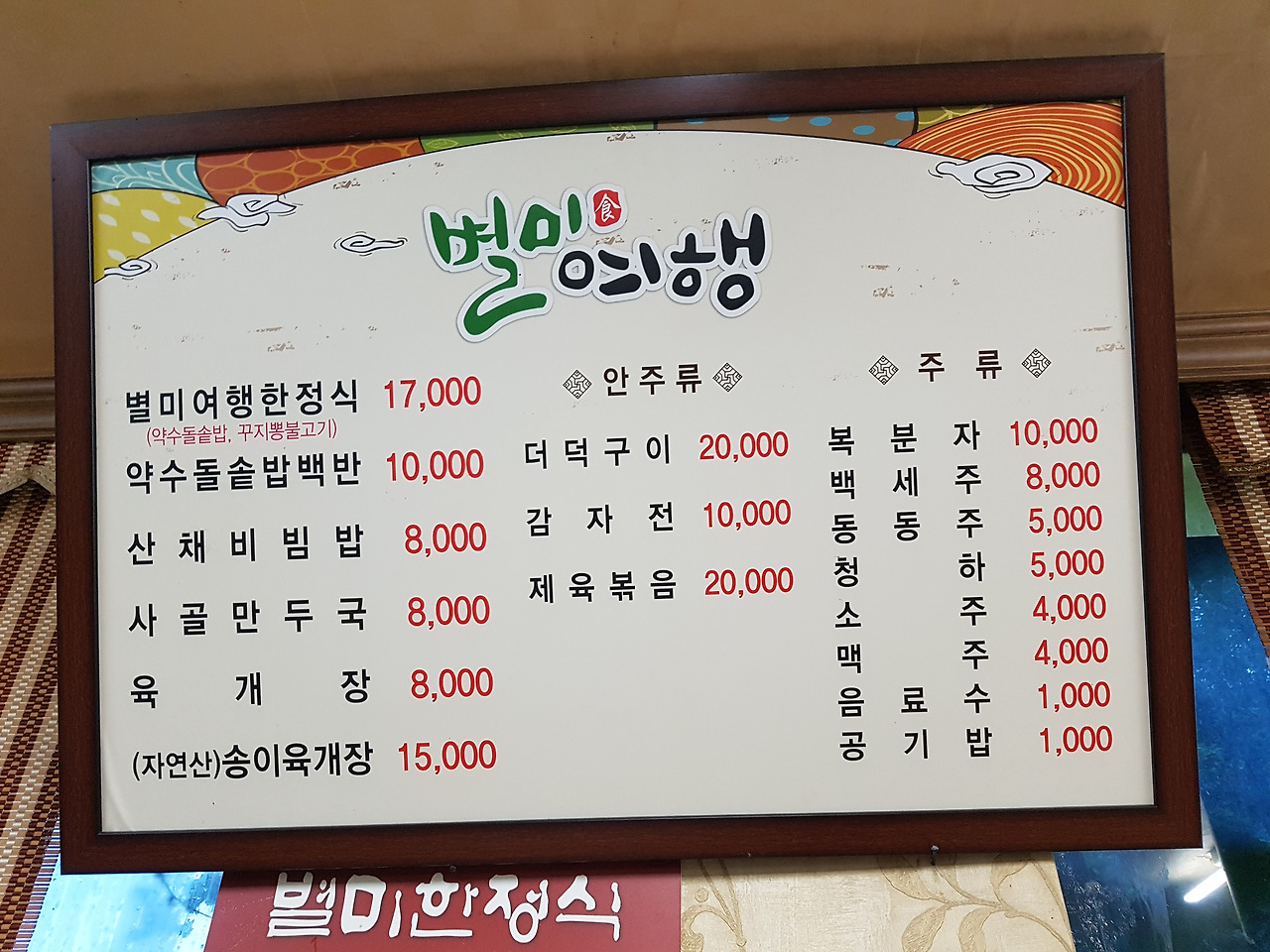 '별미식당' 사찰 한정식집인데 돌솥밥에 생선, 게장 불고기, 나물, 떡... 그리고 가격이 17,000원이나 한다. 먼가 속은 느낌... 하지만 너무 배고파서 후딱 먹어 치웠다.