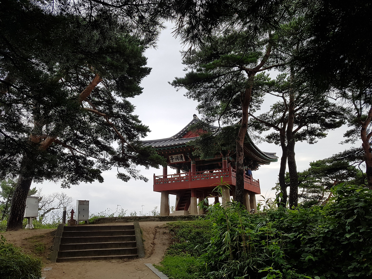 자료전시관을 나와 소나무가 울창한 계단을 오르면