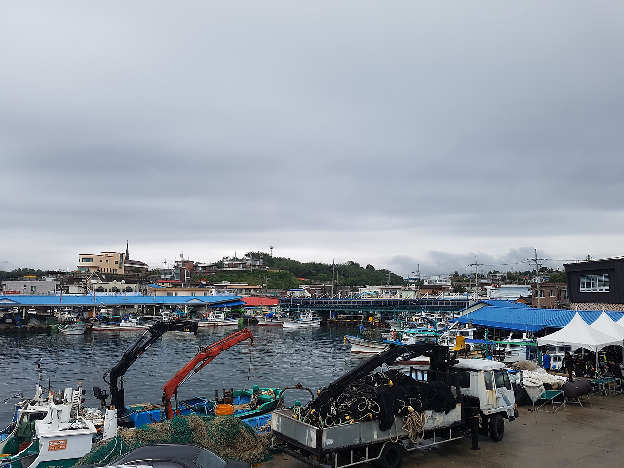 아야진항은 배가 들어온 뒤 그물정리 주어였다.