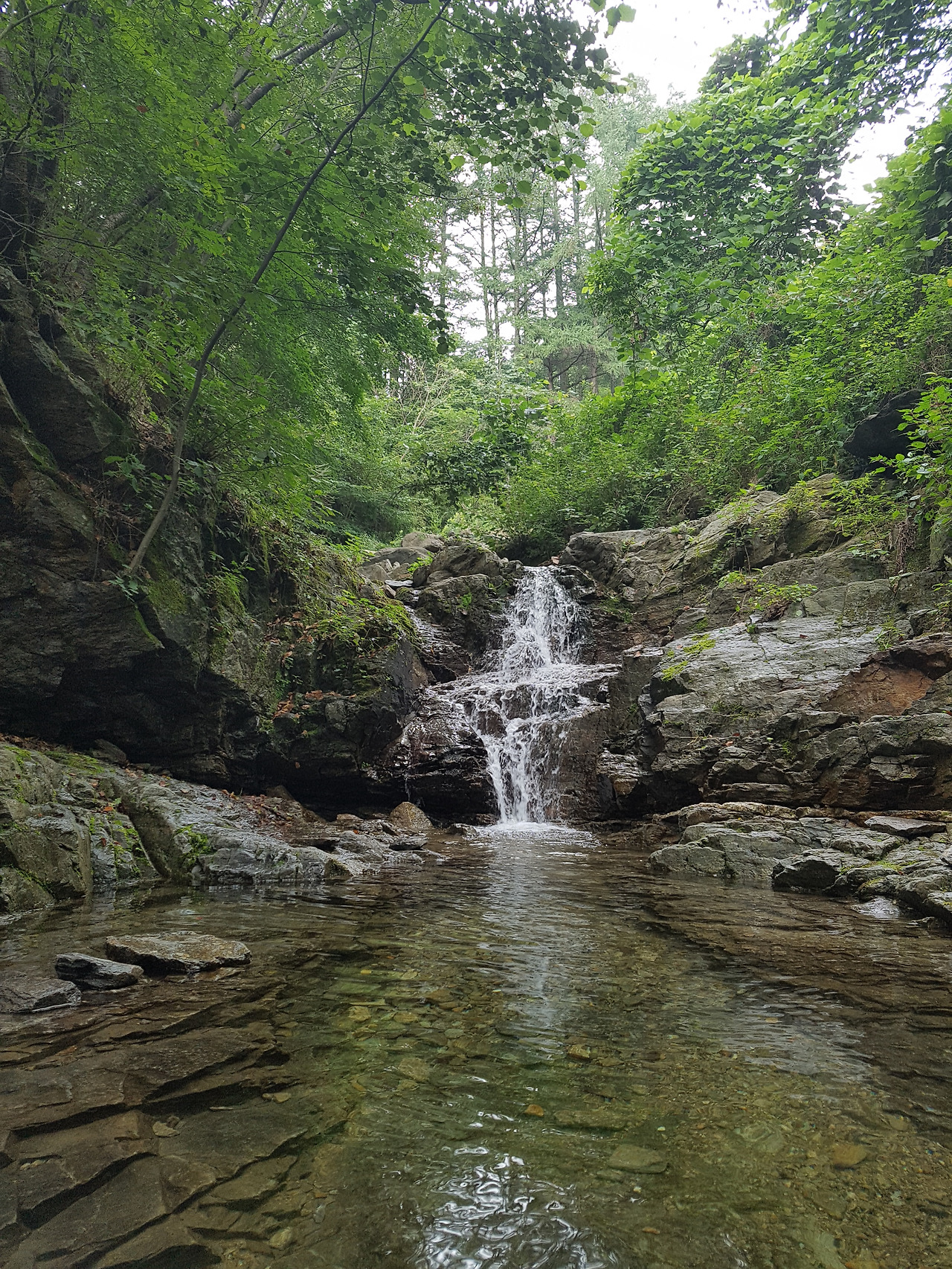 아무도 없는 계곡에 우리만 덜렁 앉아 여유를 만끽하고 있자니 신선노릇이 따로 없다. 쏟아지는 빗줄기를 온 몸으로 받아냈다. 자연과 하나가 되어 시원한 감촉을 즐겼다.