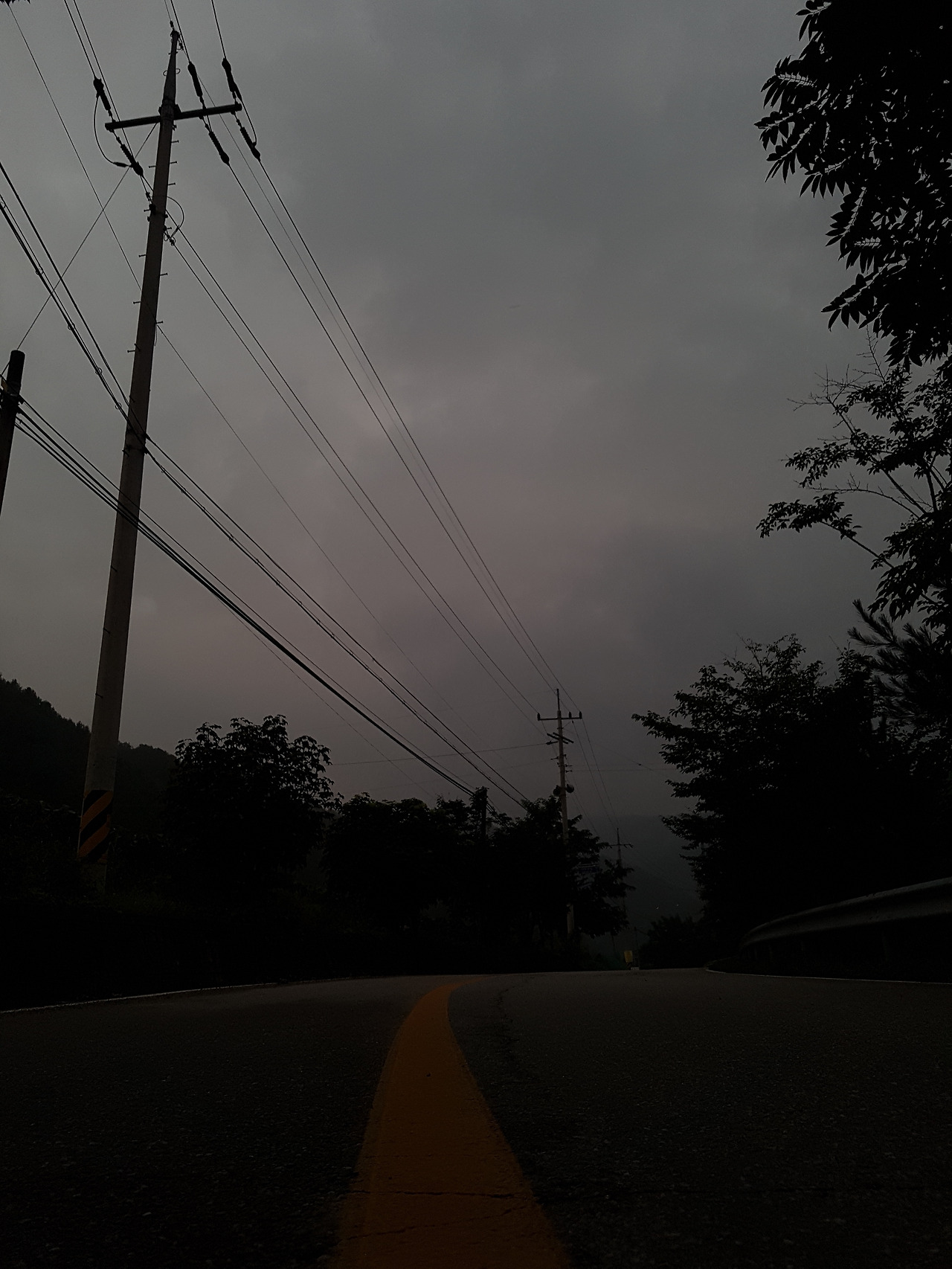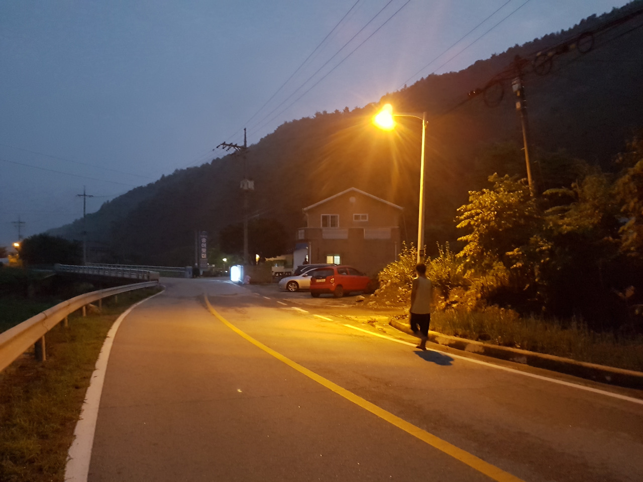 휴양림의 관리소에 전화해보니 이쁜 통나무 산막은 한달 전, 월 초에 예약이 끝난 상태라 했다. 가리산 자연휴양림에서 1.4km 내려와 ‘가리산민박’을 예약했다. 숙소를 잡고 편안한 맘으로 맥주와 치킨을 샀다. 하지만 바로 숙소로 들어가지 않았다.