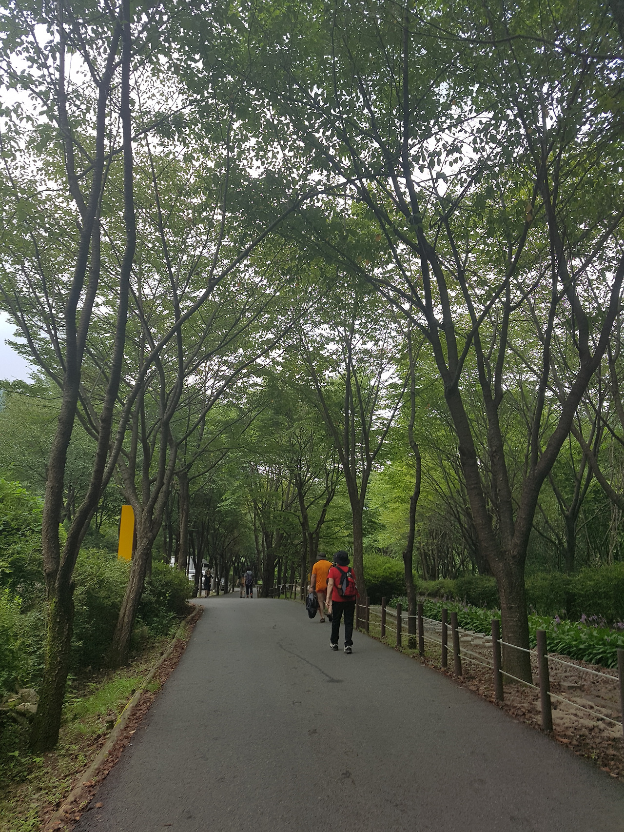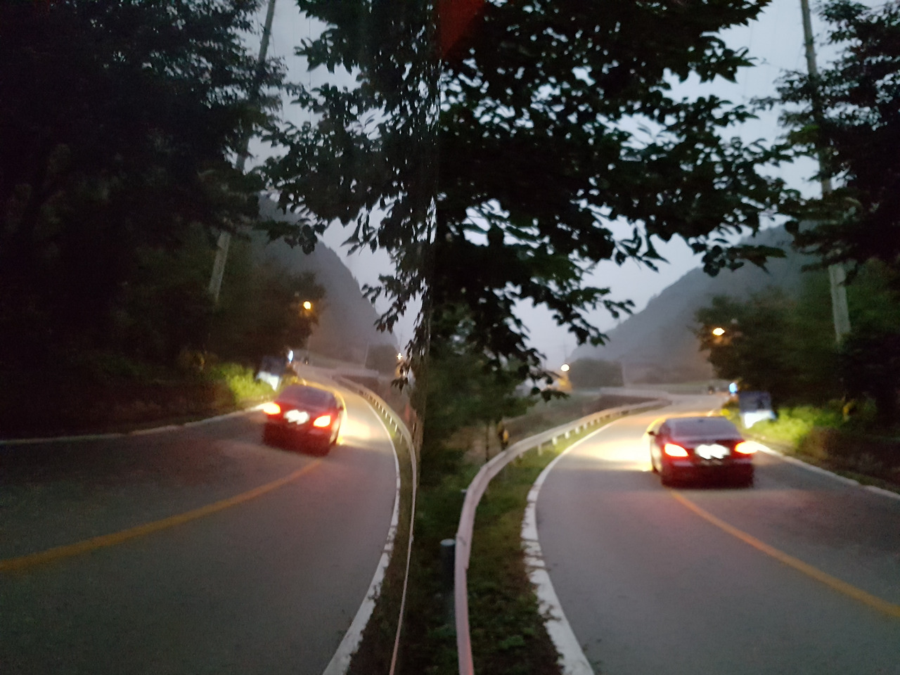이 멋진 풍경을 담기위해 사진기를 들고 각자 흩어져 찍기 시작했다. 하지만, 하루 종일 숲의 돌길을 걷느라 발바닥이 너무 아팠다. 그동안 복잡하지도 않고 단순한 평지 길을 걷는 것도 왜 그리 힘들어 했는지. 붉게 물든 하늘과 함께 마음도 따뜻한 온기에 노곤 해졌다. 어둑해진 숲길을 천천히 걸으며 숙소로 향했다. 이젠 씻고 시원한 맥주와 바삭한 치킨으로 배를 채우고 잠들 일만 남았다.