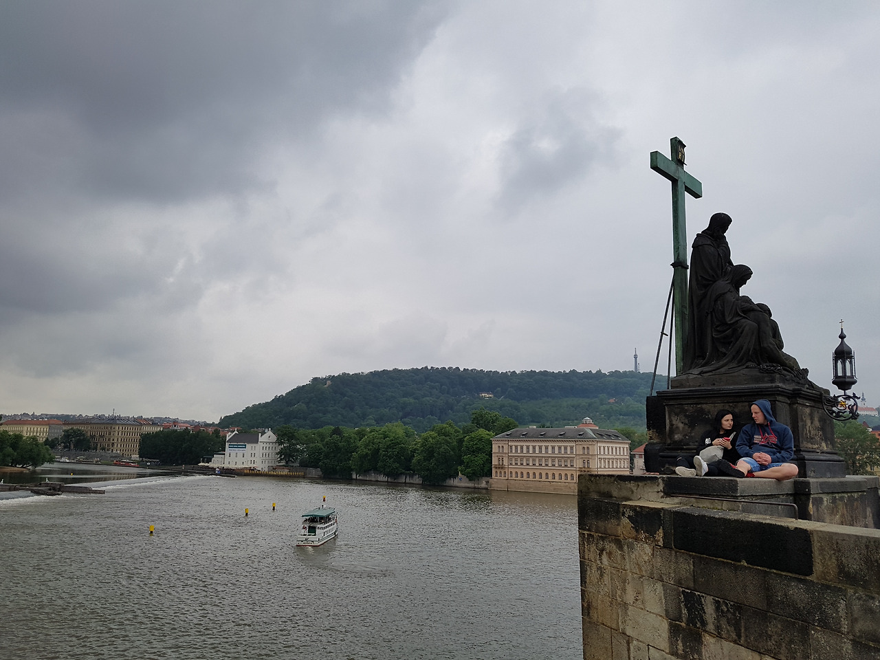 다리 밑 잔잔한 블타바 강을 지나는 유람선에는 키스를 하는 연인들도 보인다.