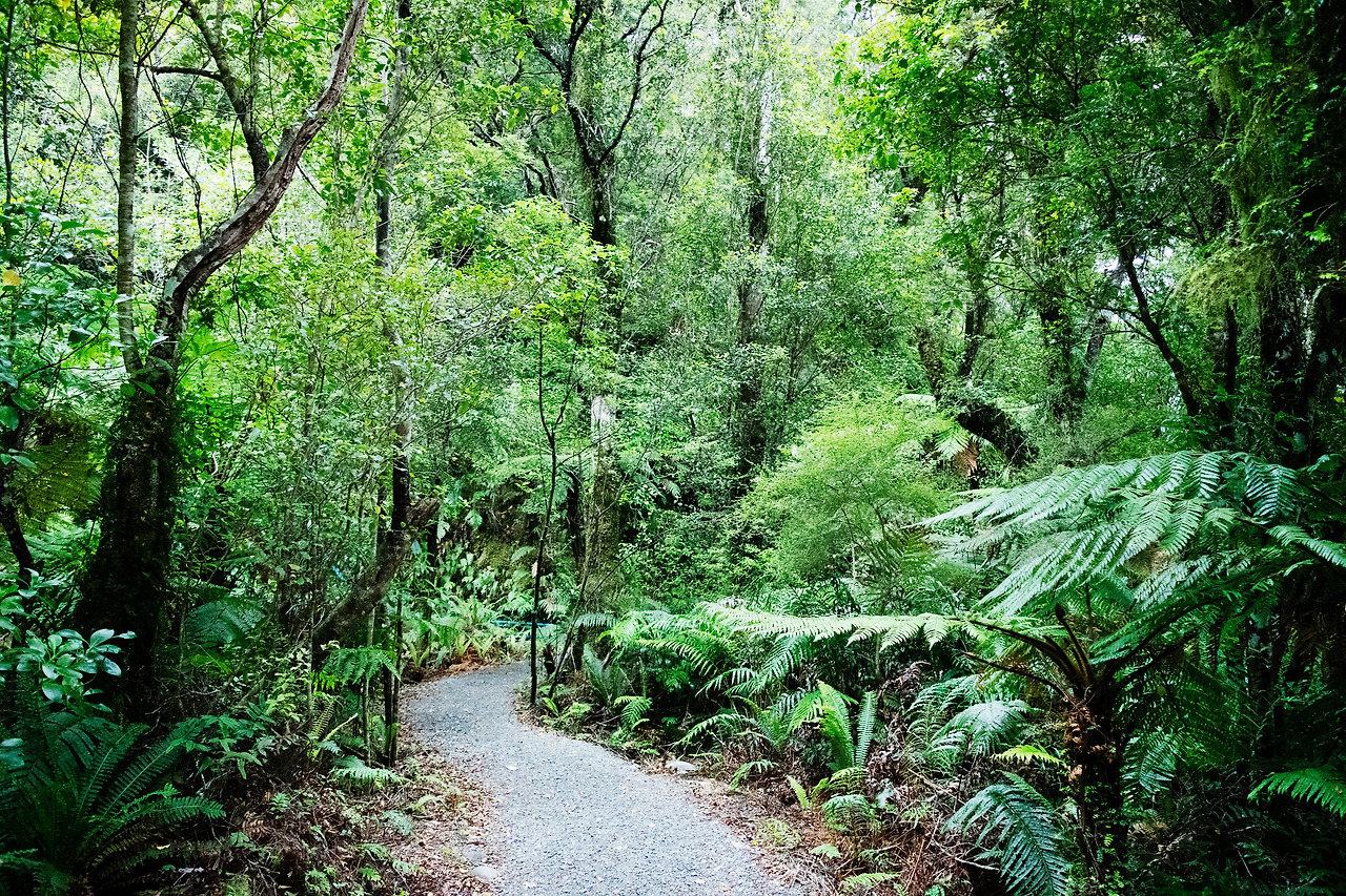 테아나우로 가는 방향의 호머 터널을 통과해 나와서 ‘루트번 트랙 주차장 Routeburn track Parking Area’에 주차를 한 후 짧은 시간 루트번 트랙을 걸었다. ‘아스파이어링 산 Aspiring Mt. 국립공원’에 속하는 트랙으로 울창한 수풀 속에 이끼와 고사리류 등이 가득 차 있어 묘한 신비감이 들었다. 너도밤나무로 울창한 숲은 자연의 싱그러움이다. 때 묻지 않은 순수한 자연이다. 이번 여행에서는 지상 낙원인 이 대자연의 길을 충분히 걷지 못했다. 트랙을 걷는 중에도 오래된 나뭇가지와 잎들 사이로 언뜻 보이는 파란 하늘과 초록색 이끼들이 나를 유혹했다.