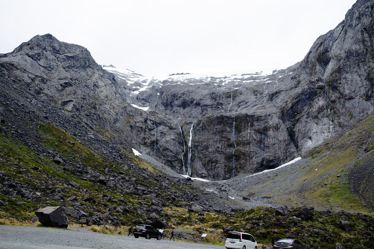 앞서 이야기한 바와 같이 밀포드 사운드로 가는 94번 도로 곳곳에서 자연의 아름다움을 마음껏 접할 수 있었다. ‘테아나우 호수’를 왼쪽에 끼고 가다 믿기지 않을 정도로 산과 산 사이의 U자 지형에 넓게 펼쳐진 초원인 ‘에글린톤 평원 Eglinton’을 만났다. 조금 더 가니 잔잔한 호수의 수면으로 주변 산을 거울처럼 반영하고 있는 유리처럼 맑은 ‘거울 호수 Mirror lake’가 있었다. 거대한 산과 구불구불한 계곡의 대자연을 조망할 수 있는 ‘팝스 뷰 Pop’s view’와 ‘홀리포드 전망대 Hollyford lookout’ ‘게트루드 계곡 전망대 Gertrude valley lookout’. 이런 곳들이 ‘호머 터널 Homer tunnel’ 앞에 도착할 때까지 만날 수 있었던 비경들이었다.