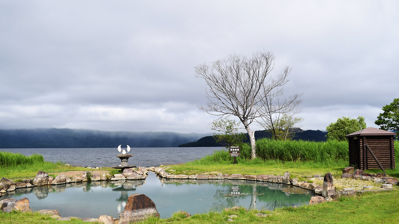 와코탄 반도 트레킹을 한 후 노천욕 대신에 아내는 코탄 온센에 발을 담그는 족욕을 했다. 나도 직접 온천물에 손을 담가 보니 물이 뜨거웠다. 호수 바로 옆에서 어떻게 이렇게 뜨거운 물이 나오고 있는지 참 신기했다.