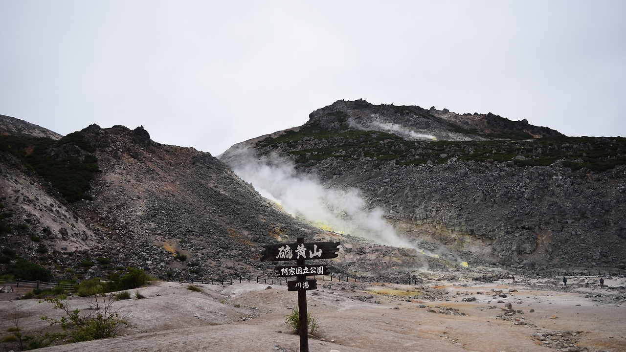 마슈호를 머리에 담고 있는 산의 구불구불한 길을 내려와 굿샤로호로 가는 길 도중에 있는 이오잔으로 갔다. 그곳에 도착하니 주차요금을 받는 할머니가 계셨다.