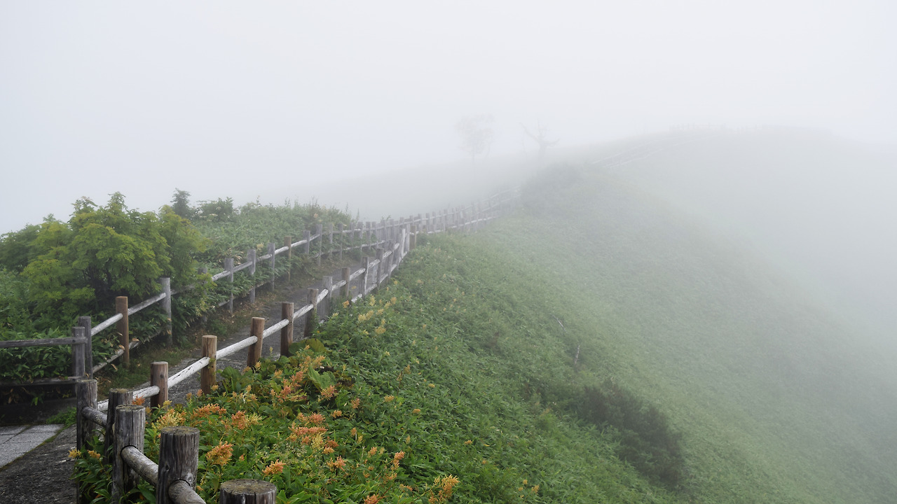 제3전망대 주차장은 도로 옆에 작은 공간으로 만들어져 있어 자칫하면 지나쳐버리기 쉬운 크기였는데 다행히 우리는 발견하여 쉽게 주차를 할 수 있었다. 제3전망대에서는 안개가 제1전망대 보다 더 짙게 깔려 몇 미터 앞도 보이지 않았다. 안개로 인해 호수는 보이지 않았지만 가까이 보이는 풀과 꽃들이 안개로 인해 촉촉이 적셔 있는 건강한 모습을 볼 수 있었다.