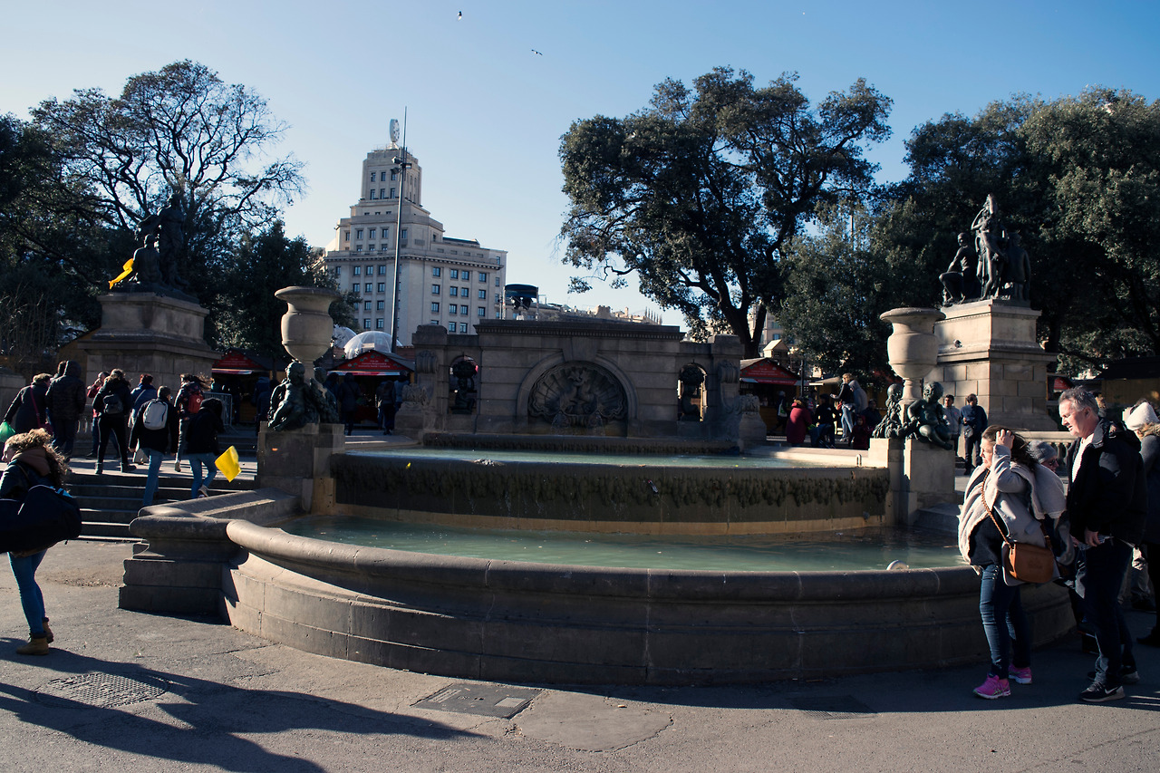 쇼핑과 여행의 시작점이자 종착점이 되는 “까탈루냐 광장”이다 보니 오고 가는 사람들로 많이 혼잡스러웠다. 마치 우리나라의 주말 오후 명동 거리처럼 붐볐다. 광장 전체를 둘러보면서 “수비라치”의 “프란세스코 마시아 기념비”도 보고 작은 연못들과 1929년 국제 박람회를 기념한 분수, 여러 개의 조각상들도 보았다.