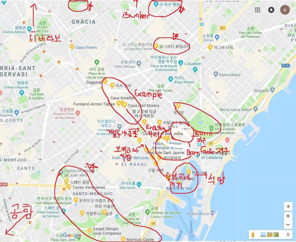 공항에서 나와 “까탈루냐 광장” Palaca de Catalunya으로 가는 택시 안에서 보이는 거리와 야자수들의 이국적 풍경에서 바르셀로나에 온 것이 비로소 실감 났다. 우리가 도착한 날은 바르셀로나에서는 아주 드물게 바람이 강하게 불고, 추운 날씨였다. '나는 춥다고 느끼지 못했지만...... '