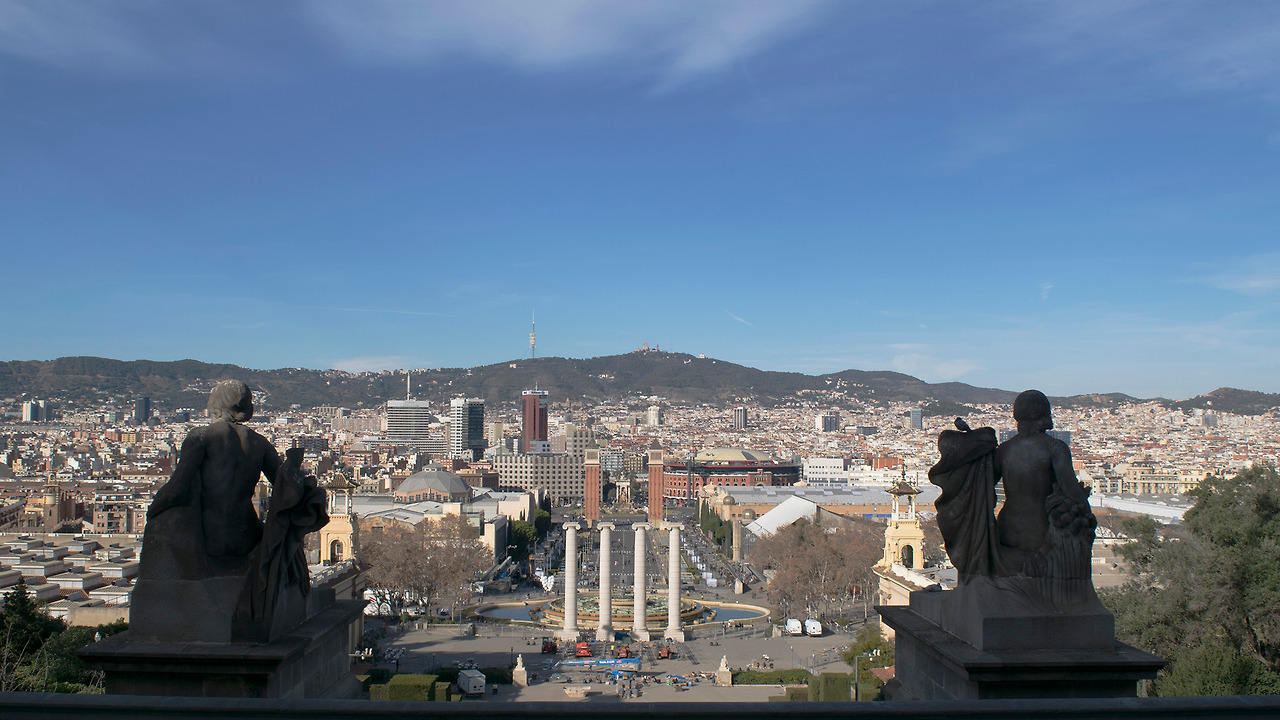 1929년 만국박람회를 위한 베네치안 타워와 몬주익 분수, 까탈루냐 미술관 그리고 스페인 광장