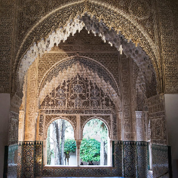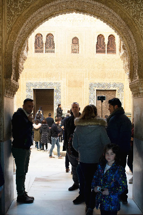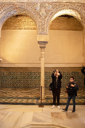 “사자의 안뜰” 한 편으로 설화석고로 만든 돔형 천정이 정교하고 화려하게 새겨져 마치 별자리를 연상시켜 눈길을 끌었다. 특히, 천정 아래에 문양으로 장식한 창문을 두어 외부에서 들어온 빛이 천정을 더욱 빛나게 하고 있었다. 궁전에서 가장 아름다운 방 중 하나인 “아벤세라헤스의 방”에 있는 아치의 화려함과 아름다움도 눈길을 끌었다.