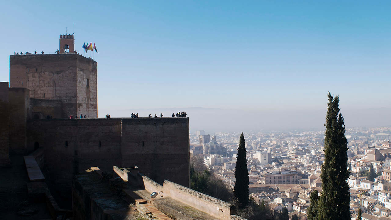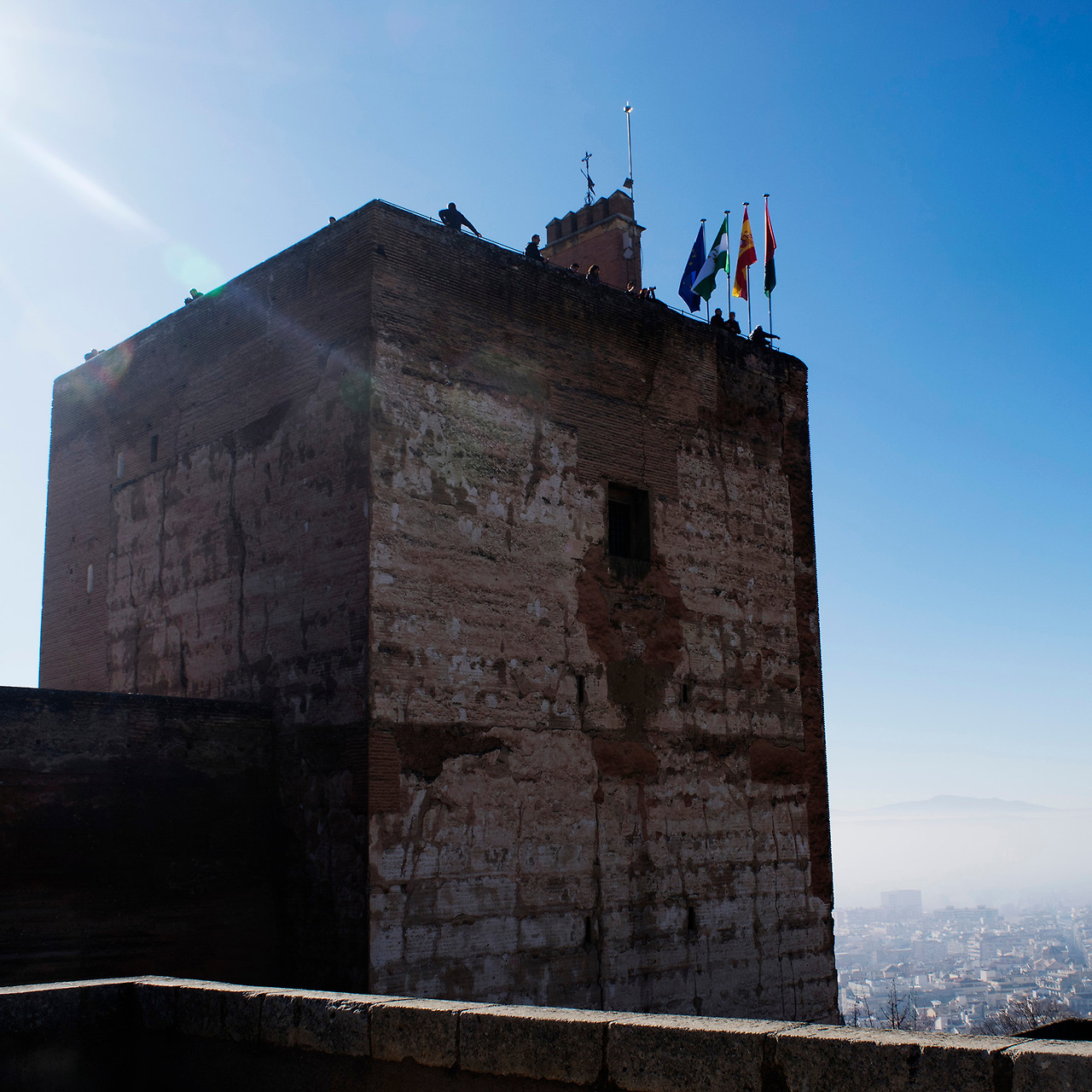 호텔, 박물관 등이 있는 거리를 지나 “카를로스 5세 궁전”의 맞은편 “알카사바 Alcazaba”로 갔다. “알카사바”는 알람브라 궁전 중 가장 오래된 부분으로 9세기경 짓기 시작한 군사적 성곽 및 이슬람 양식의 요새이다. 성벽을 따라 순찰 통로가 있으며, 총 24개의 탑 중 현재는 “벨라의 탑” 등 4개의 탑만 남아있다. “벨라의 탑”은 요새의 중앙에 있는 탑으로 성 내부와 알바이신 지구, 그라나다 구도심 등을 한눈에 조망할 수 있었다.