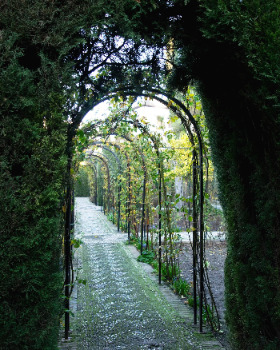 “헤네랄리페” 밖으로 나가는 길을 알려주는 화살표를 따라 걸었다. 나오는 길에 보이는 경관에서 삶의 피로가 풀리는 치유의 느낌이 들었다. 길 양 옆의 나무들이 만든 울창한 터널을 지나며 나뭇잎 사이로 비치는 햇살을 맞이하기도 하였다. 수로를 옆에 끼고 있는 언덕을 내려가며 물이 흐르는 소리에 귀를 기울이기도 하였다. 사이프러스 나무 숲 사이를 걸으며 감사의 기도를 드렸다.