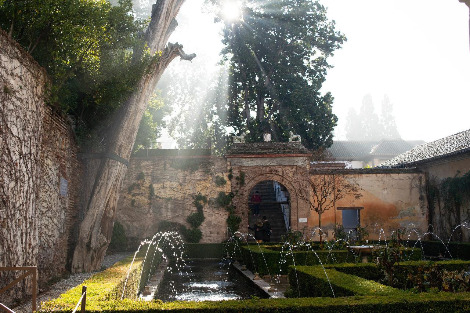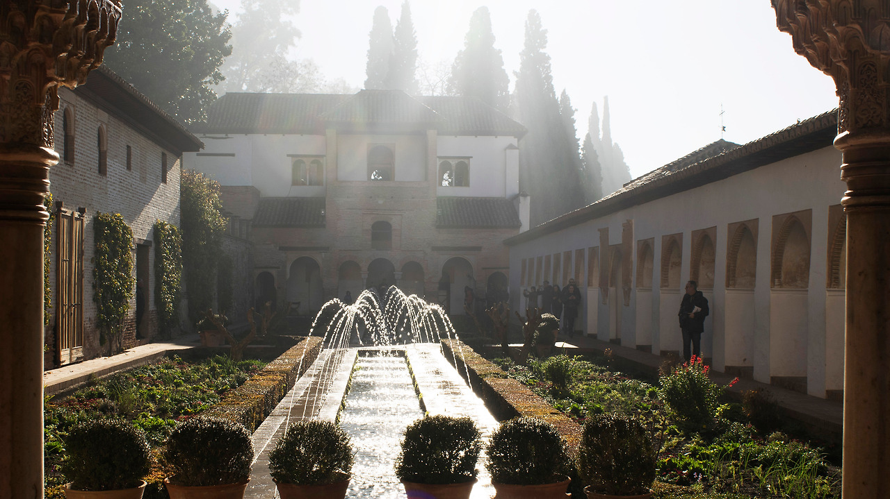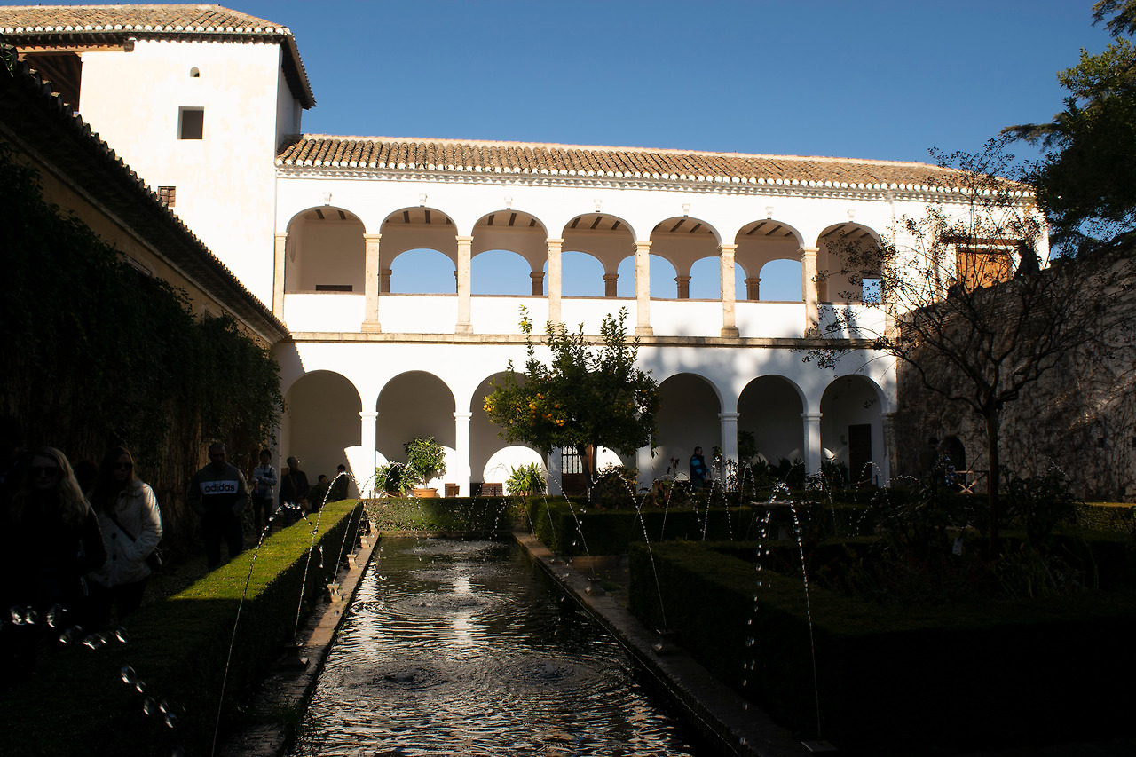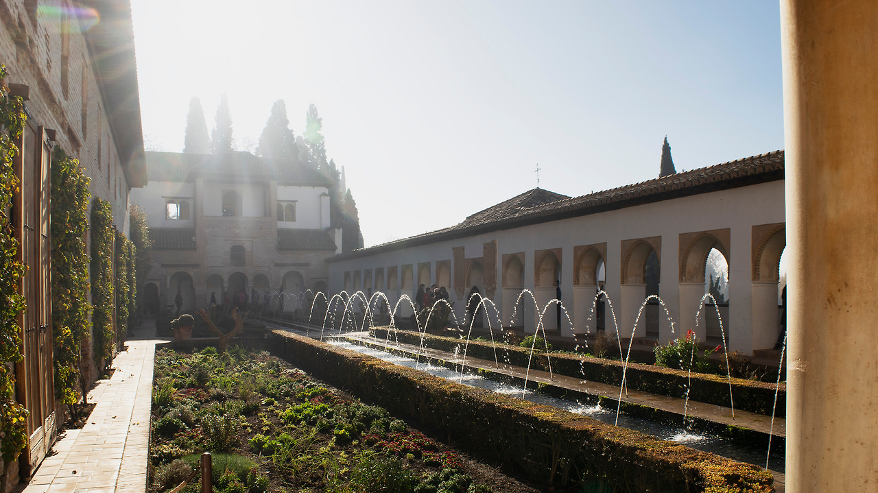 이곳의 많은 건물과 구조물은 여름을 염두에 두고 만들었다. 덥고 건조한 여름 기후를 이겨내기 위하여 그늘, 바람, 쉴 새 없이 흐르는 분수들로 뜨거운 태양의 열기를 식혀 시원한 공간을 만들려고 한 것이다. 시에라네바다 산맥에서 이곳까지 물을 끌어와 고도차와 압력차를 이용하여 흐르는 물이 있는 공간을 만들었다.