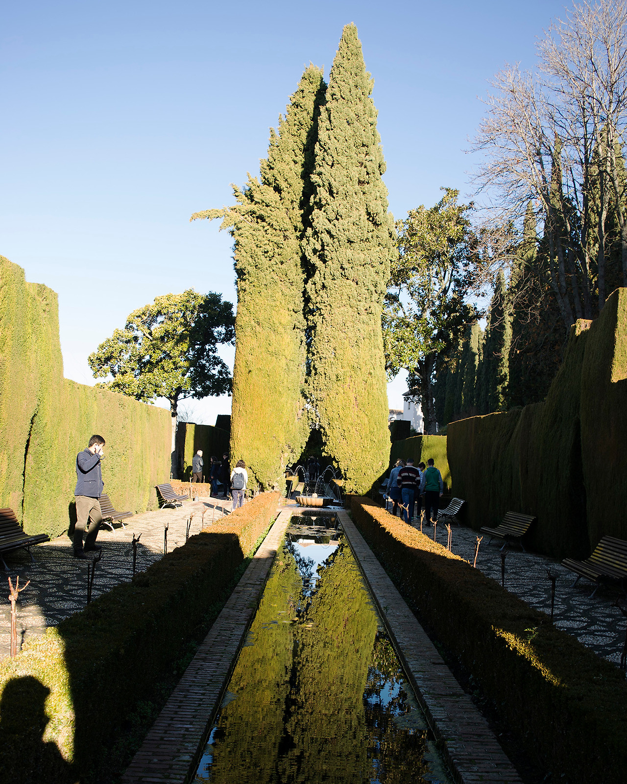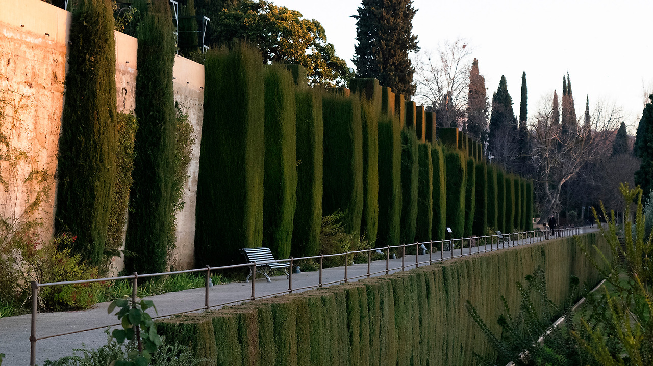 헤네랄리페 정원과 알람브라 궁전을 만든 무슬림 건축가들은 정원을 해치지 않으면서 늘 푸른 병풍이 되어주는 사이프러스 나무를 가로수로 선택했다고 한다. 그래서 이곳에 사이프러스 나무가 많았다.