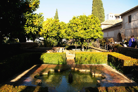 궁전의 방들과 회랑을 돌아 “나사리에스 궁전의 끝에 다다르니 중정의 정원이 보였다. 귀족들의 정원이었다고 하는데 과거의 영광을 다 잊은 채 고즈넉한 느낌을 주는 정원이었다.