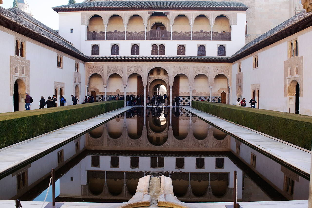 알람브라 궁전을 대표하는 명소로 “나사리에스 궁전”의 “아라야네스 정원”을 뽑을 수 있다. 직사각형 연못을 중심으로 남쪽으로는 국왕이 거처하던 “코마레스 홀”이 북쪽으로는 그라나다 시내의 전경을 볼 수 있는 망루 겸 접견실인 “코마레스 탑”이 있다. 연못에 비친 하늘과 건축물 등 너무나 아름다운 곳이어서 그곳에 한참 동안 머무르며 한 곳 한 곳을 두 눈에 담았다.