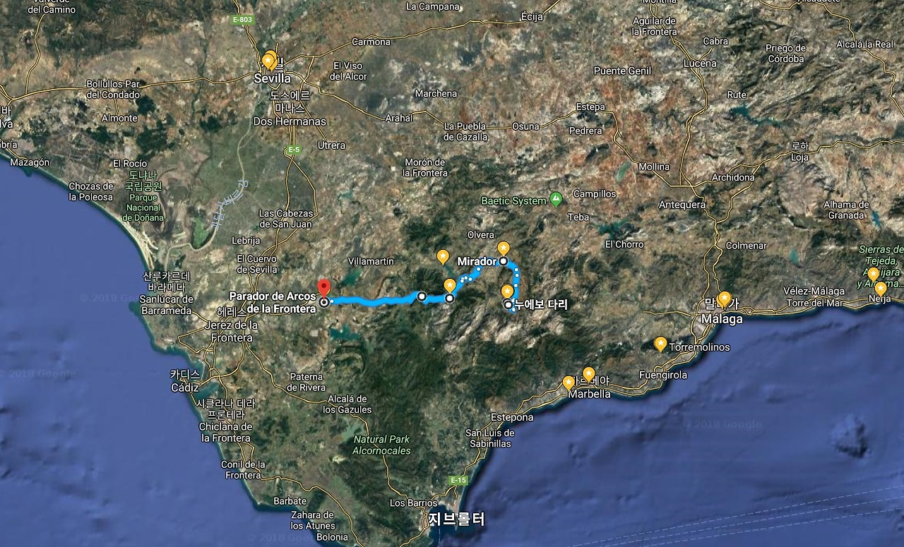 오늘 숙박이 예약되어 있는 “아르코스 데 라 프론테라 Arcos de la Prontera”의 파라도르까지 가려면 “그라살레마 산맥 자연공원 Sierra de Grazalema Natural Park”을 우회하거나 넘어가야 했다. 우리는 세테닐에서 “자연공원 산맥”에 퍼져 있는 9개의 하얀 마을 중 가장 중심지인 “그라살레마 Grazalema”를 거쳐 넘어가기로 했다.