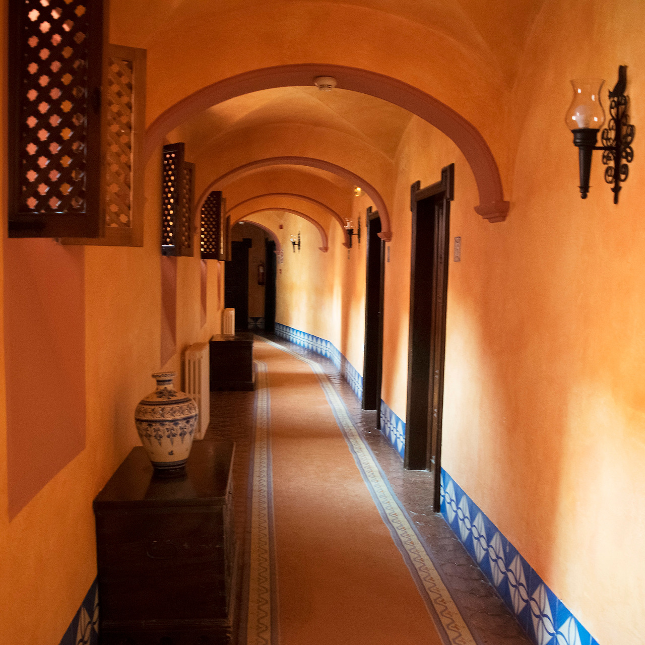 파라도르 내부가 고풍스러웠다. 다른 곳에 못가고 이곳에서만 쉬어도 충분히 힐링이 될 수 있을 것 같았다. 파라도르의 테라스에서 전방에 펼쳐져있는 평야가 한눈에 다 내려다 보였다. 특히, 해 질 녘 노을이 너무나 아름다웠다. 파라도르에서 나오면 바로 옆에 로마시대에 세웠다는 성당이 세월의 이끼를 낀 채 서 있었다. 파라도르를 나와 구시가지를 걸으면서 하얀마을들을 둘러보았다. 해가 질 무렵이 되어 노을을 보기 위하여 다시 파라도르로 돌아왔다. 파라도르 테라스에서 아름다운 스페인의 붉은빛 노을과 야경을 감상하였다.