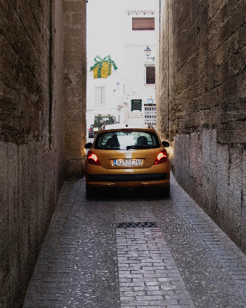 파라도르는 성문으로 들어가 제일 높은 곳에 위치해 있었다. 오래된 시가지이다 보니 골목길이 좁았다. 성문을 통과하면서 일방통행 길이 시작되었다. 일방통행 길을 따라 조금 더 올라가는데 도저히 차가 통과할 수 없을 것 같은 좁은 길이 나타났다. 아무리 생각해봐도 차가 긁힐 것 만 같았다. 마침 우리 뒤에 오는 차들도 보이지 않았다. 비상등을 켜고 후진을 하기 시작했다. 뒤에서 오던 차 한 대가 다행히 카페 앞 넓은 곳에서 기다리고 있다가 우리 차 옆으로 추월해서 갔다.