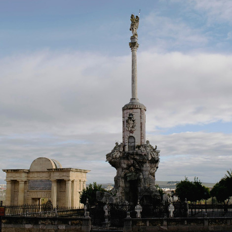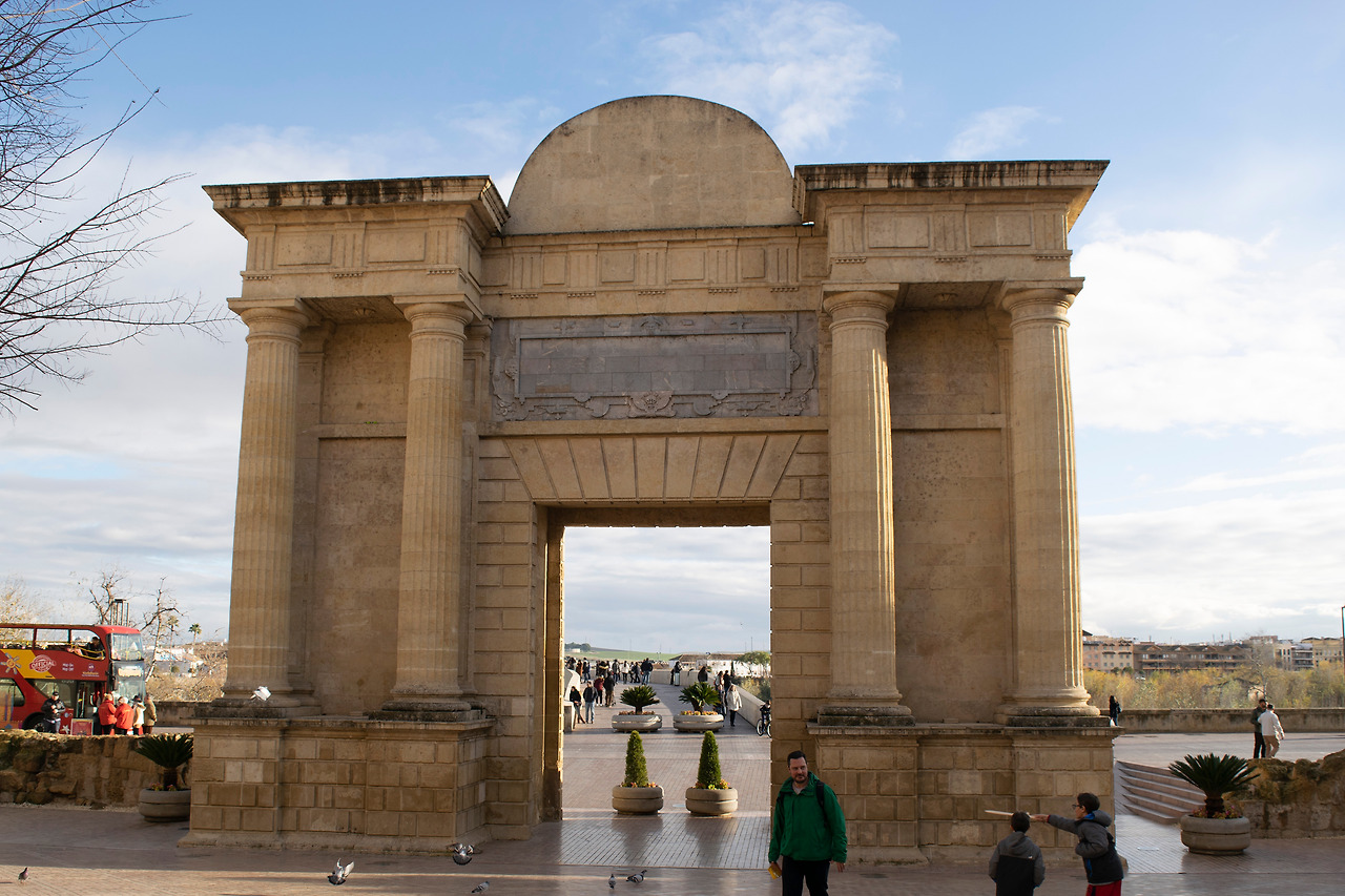 "트리운포 광장 Triunfo” 에서 메스키타가 있는 누런 벽을 기대고 로마교 다리를 보니 바로 오른쪽 아래로 라파엘 기념탑이 보이고, 로마교로 가는 방향에 웅장한 4개의 기둥으로 되어있는 “푸엔테 문 Puerta del Puente”이 보였다. 작은 광장이지만 정감이 가는 공간이었다.