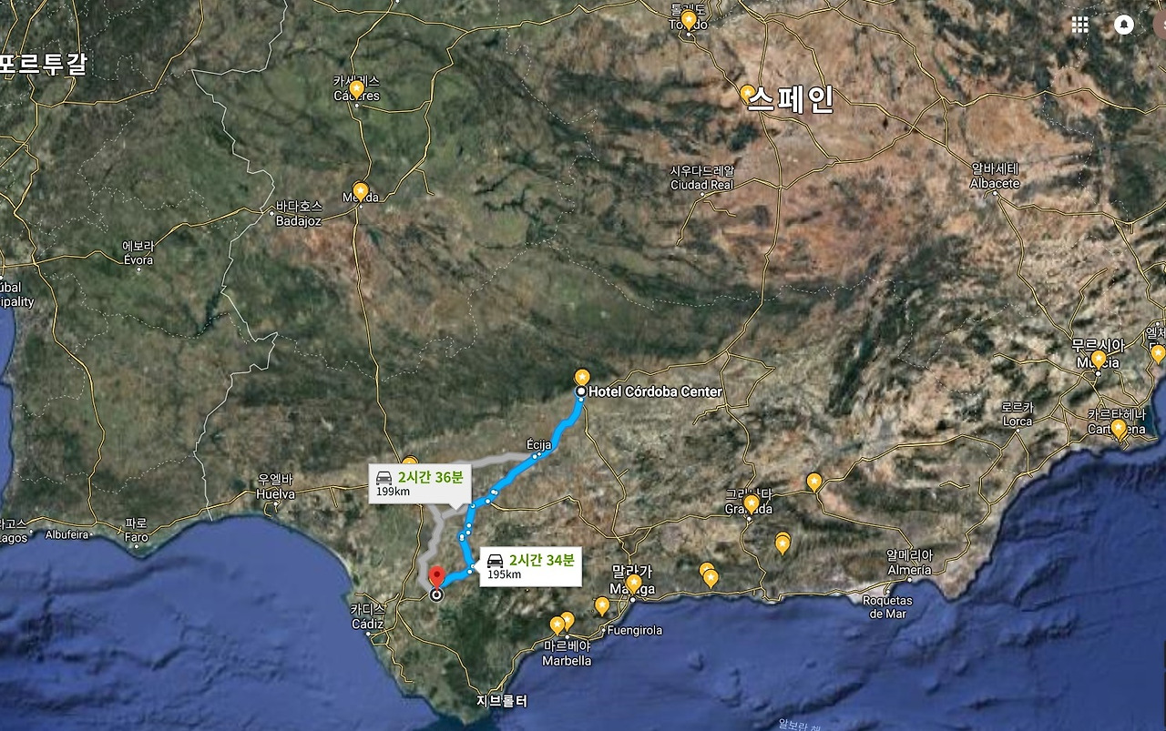 어젯밤부터 내린 비는 아침에도 촉촉이 내리고 있었다. 오늘은 이슬람이 안달루시아 지방을 지배하고 있을 당시 콘스탄티노플, 바그다드와 함께 3대 문화도시로 불렸던 “코르도바 Cordoba”를 여행하는 일정이다. 비 내리는 “아르코스 데 라 프론테라” 고성의 좁은 골목길을 내려와 안달루시아 지방의 중앙을 향해 달렸다. 코르도바로 가는 오전 내내 비가 내렸다 안 내렸다를 반복했다.