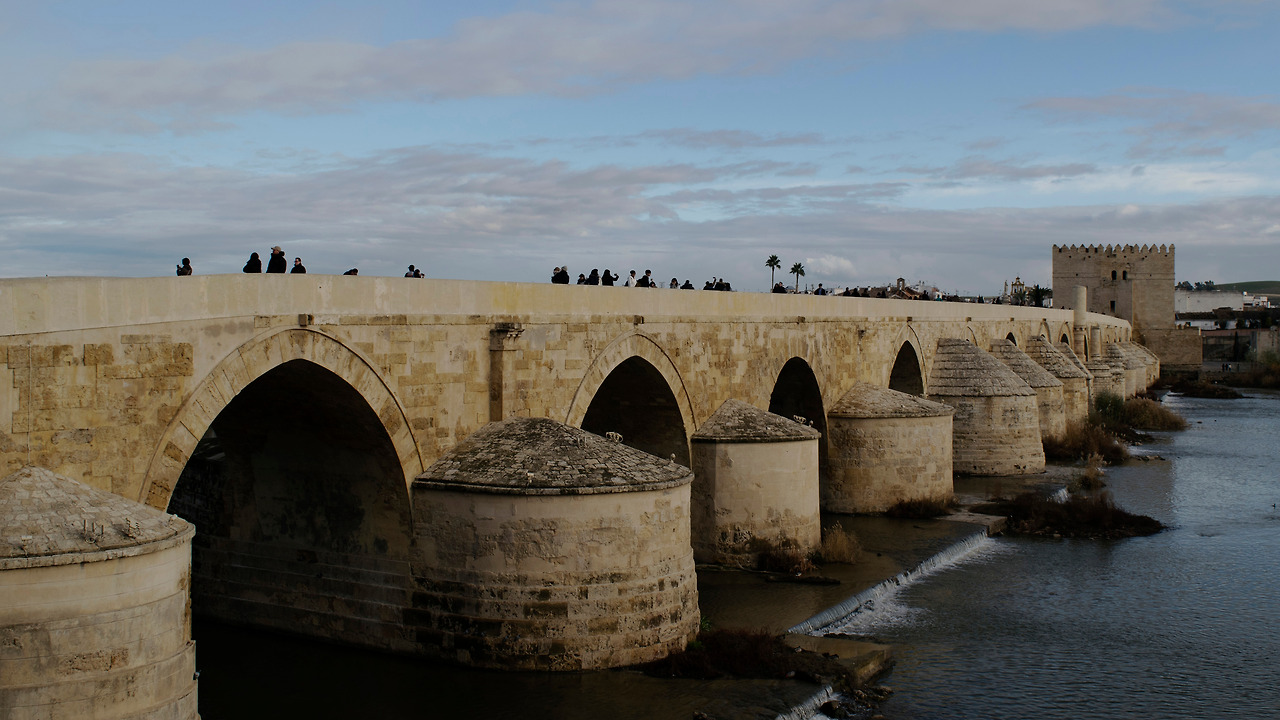 1세기에 만들어진 길이 233m의 로마교는 웅장한 느낌이 드는, 16개의 아치로 만들어져 있다. 여러 차례 증개축을 해서 현재도 보행자 전용 다리로 사용하고 있었다. 다리 끝에 칼라오라 탑이 있는데 다리와 알카사르를 지키기 위해 세워졌다고 한다. 다리 가운데에 코르도바의 수호성인인 “성 라파엘”의 동상이 있다는 것이 좀 색다른 느낌이 들었다. 이 다리에 있는 상을 포함하여 코르도바 시내에는 모두 12개의 라파엘상이 있다고 한다. “푸엔테 문”을 향해 돌아오는 다리 가운데서 바라본 메스키타 방향의 풍경에서 오래된 시간의 향기가 느껴졌다.